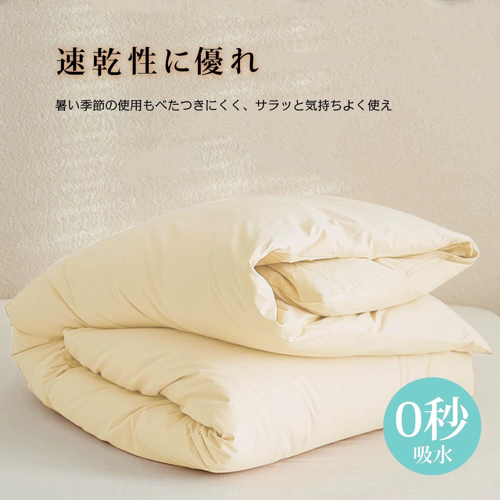 【速乾性に優れ 0秒で吸水】かけ布団カバーは優れた吸湿性・通気性に優れ、汗をかいてもベタつかずサラサラ感を保ち、乾きも早いです。サラッとした肌触りでベタつきません。しっとりと肌に触れると心地よく、毎日快適に眠れて、一年中お使いいただけます。