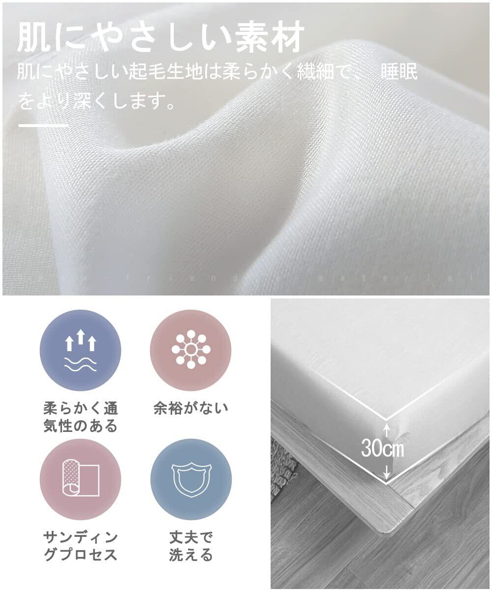 【内容と仕様】ボックスシーツ(1枚)・100X200+30cm 、ポリエステル100%の素材で、サラッとした肌触りがあります。厚さ5cm~30cmのマットレスに適しています。 注: この製品にはボックス シートが 1 つしかなく、他の製品は含まれていません。