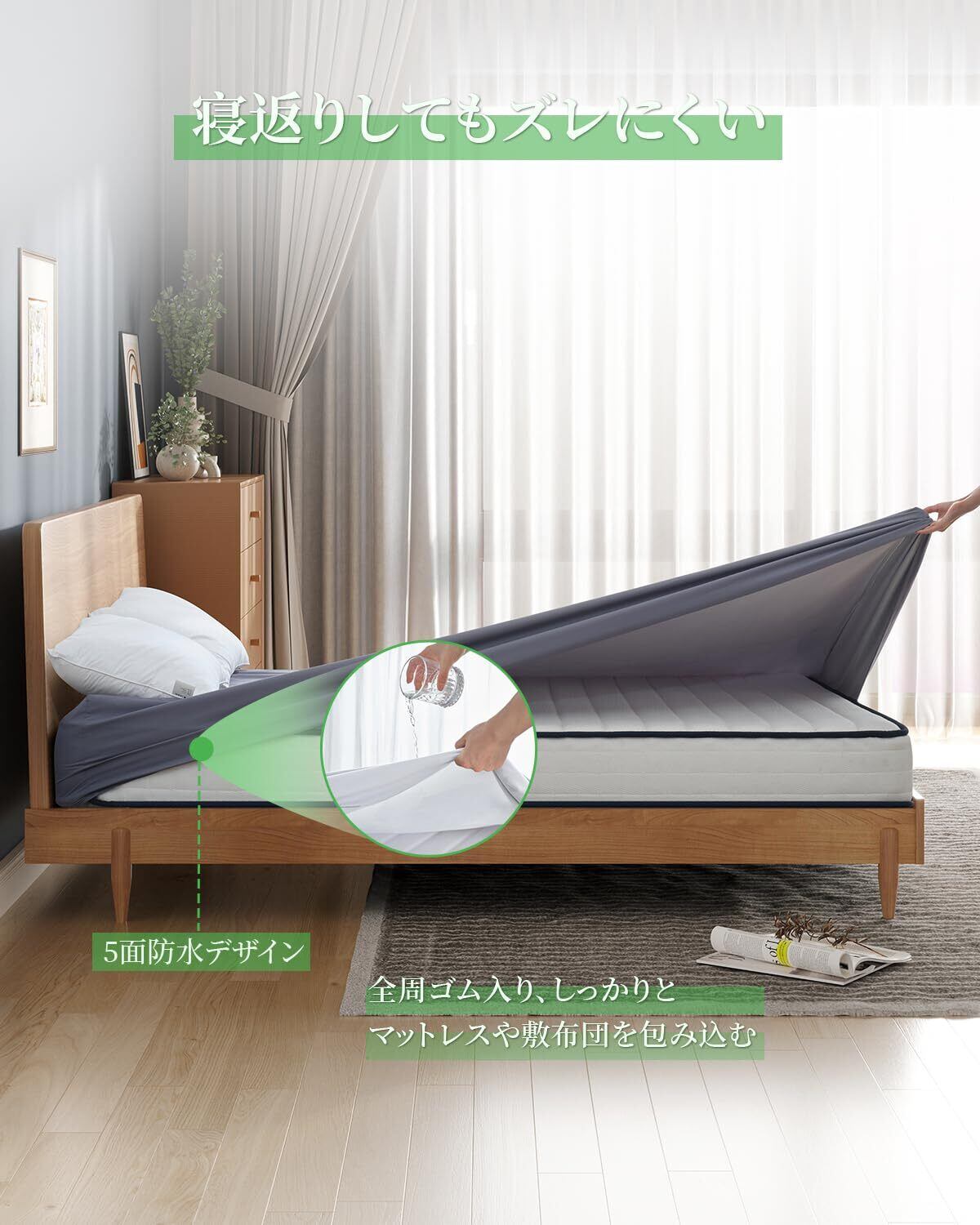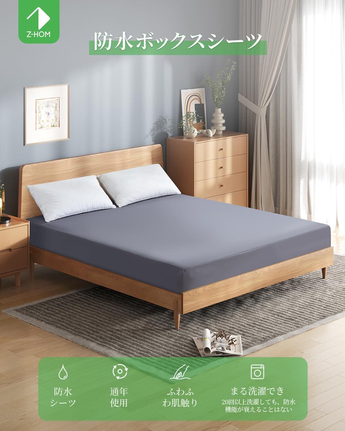 Z-HOM 防水シーツ 側面完全防水 シングル ボックス 全面防水 ボックスシーツ ダブル セミダブル クイーン マットレスカバー 防水 ベッドシーツ 防ダニ 丸洗い可能 大人用 赤ちゃん おねしょシーツ 介護用シーツ(グレー シングル)