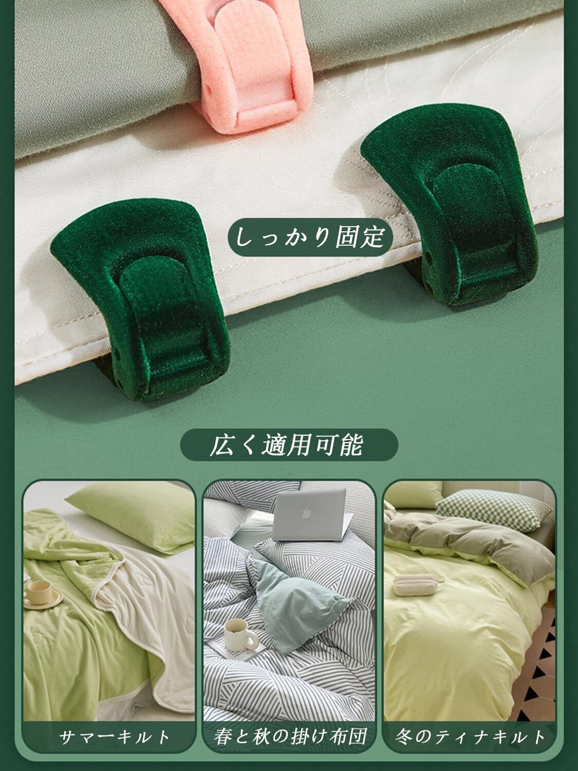 【幅広い用途】羽毛掛け布団、厚手の掛け布団、厚手の掛け布団、厚手の掛け布団カバー、厚い掛け布団カバーを収納できるだけでなく、当社のキルトクリップは他のほとんどの場面で使用できます。 例えば、カーテンを固定したり、風で飛ばされるのを防いだり、靴下などの小物を収納したりすることができます。 これにより、家庭環境がより整頓されます。