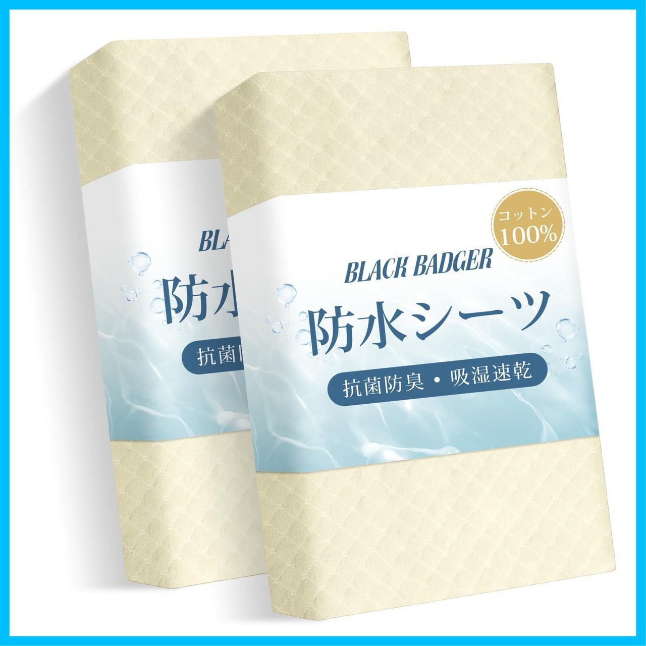 【数量限定】BLACK BADGER 防水敷きパッド シングル 2枚組 綿100% 天然コットン 防水おねしょシーツ 抗菌・防臭・防ダニ 防水シーツ ベビー 防水パット 丸洗い可能 防水カバー 失禁対策 4隅ゴム付き (ベージュ ・ 100*200cm)