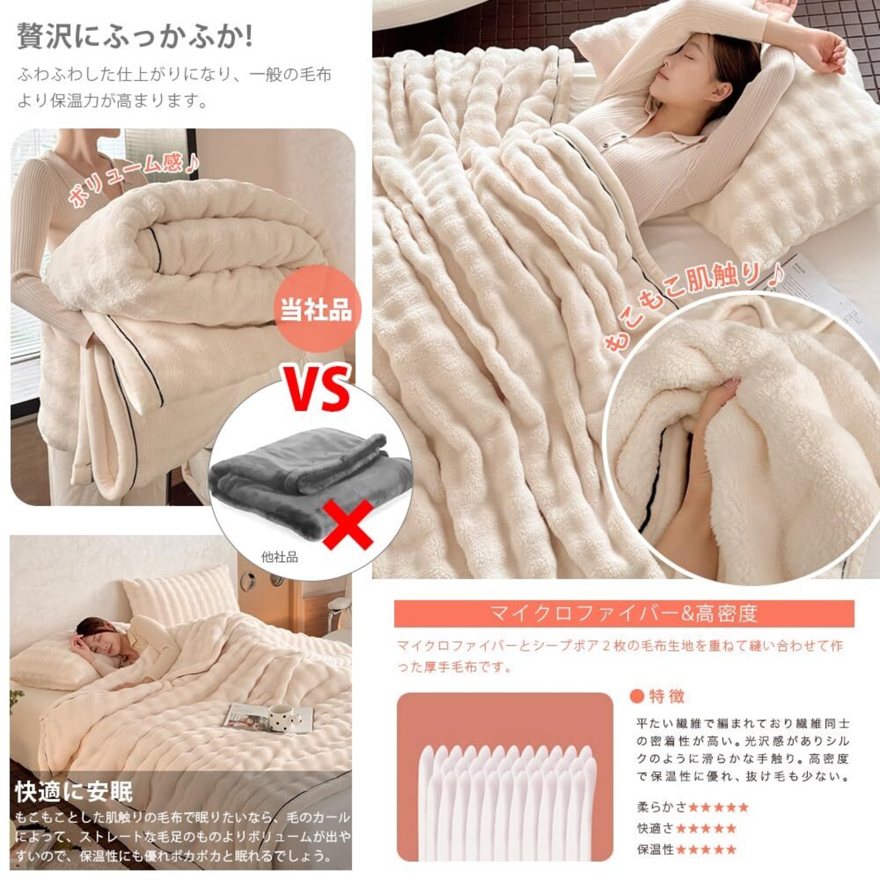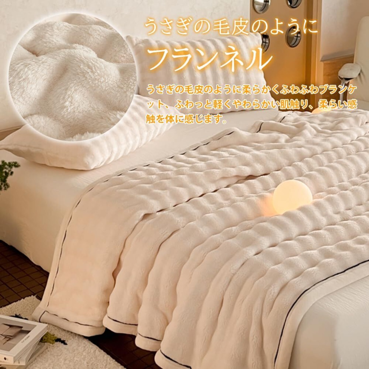 【超やわらかい毛布】うさぎの毛皮のように柔らかくふわふわブランケット、ふわっと軽くやわらかい肌触り、柔らい感触を体に感じます。触り心地も最高なふわふわ生地、圧迫感もない、膝や体にかけてふわふわで気持ちいいです。吸湿発熱わたが、寝ている間の汗を吸ってくれるためムレにくく、保温性にも優れている、快適に安眠できます。