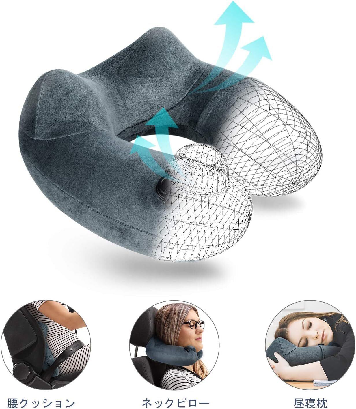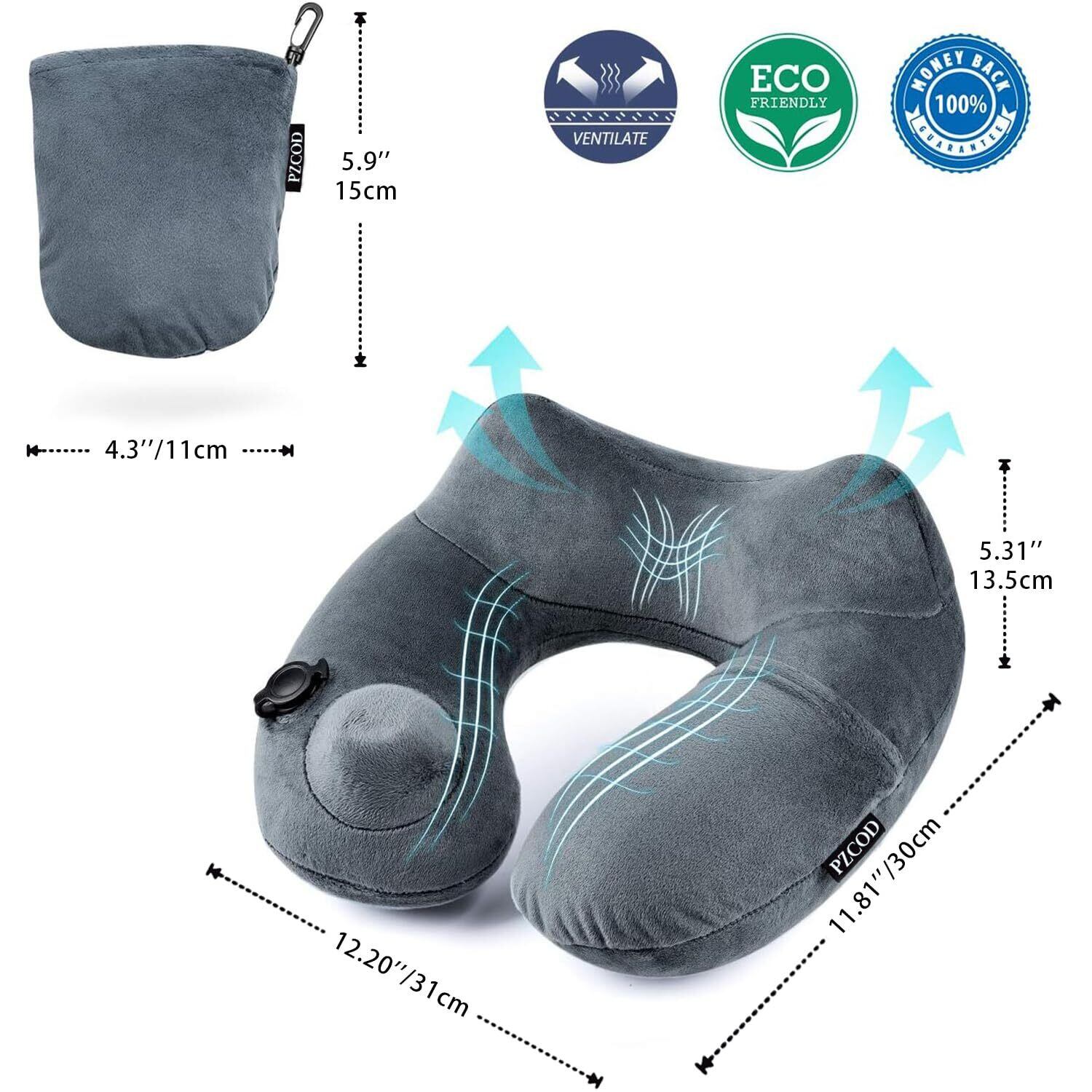PZCOD ネックピロー 首枕 旅行用 飛行機 空気枕 携帯枕 U型 バス オフィス トラベル 旅行便利グッズ 収納袋一体型 洗えるカバー