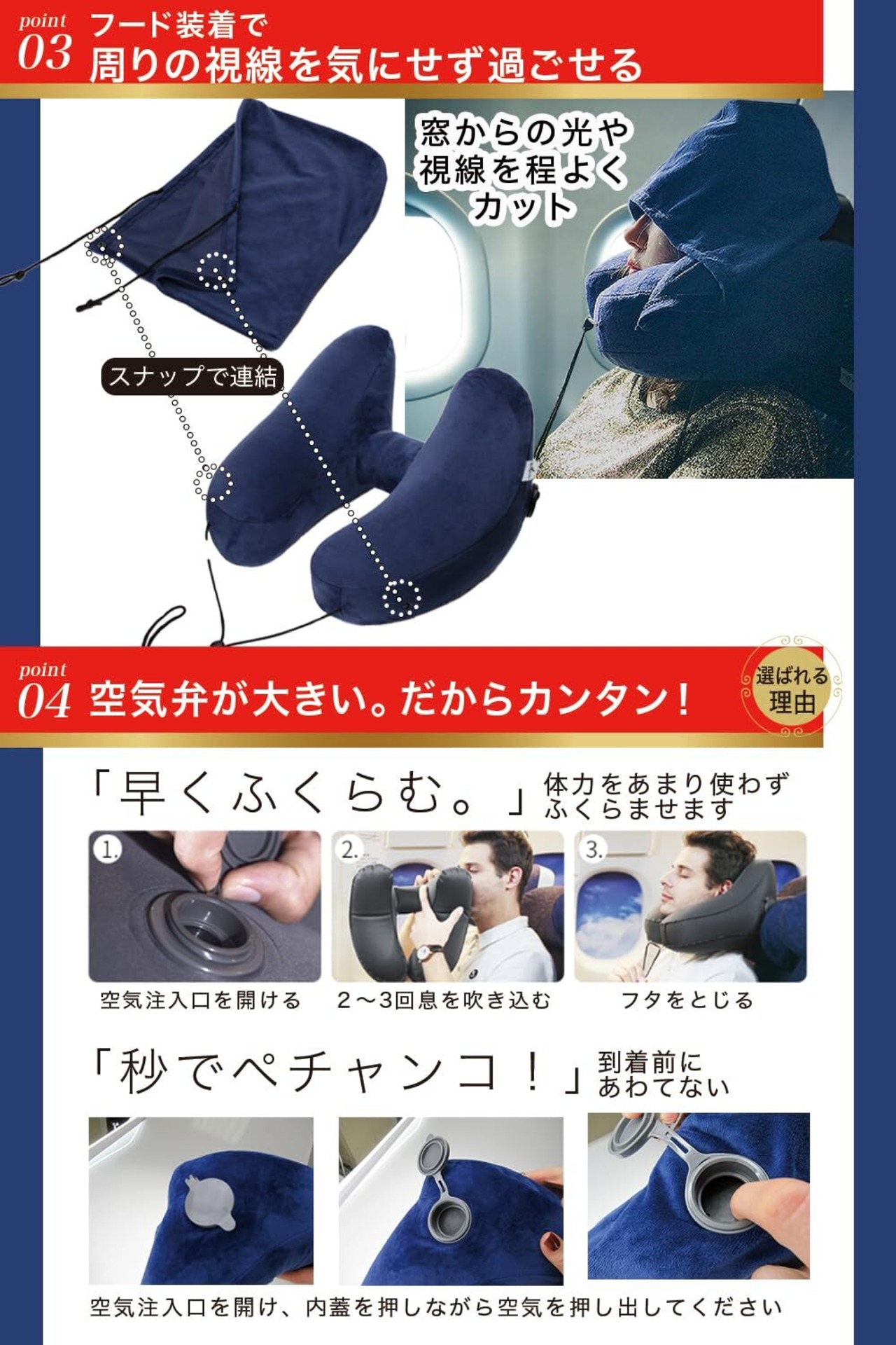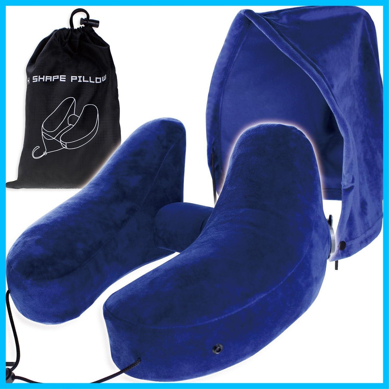 Phoenix 【理学療法士監修】ネックピロー H型 フード 収納袋 付き 持ち運び コンパクト 軽量 膨らます 脱気 カンタン 飛行機 出張 バス 新幹線