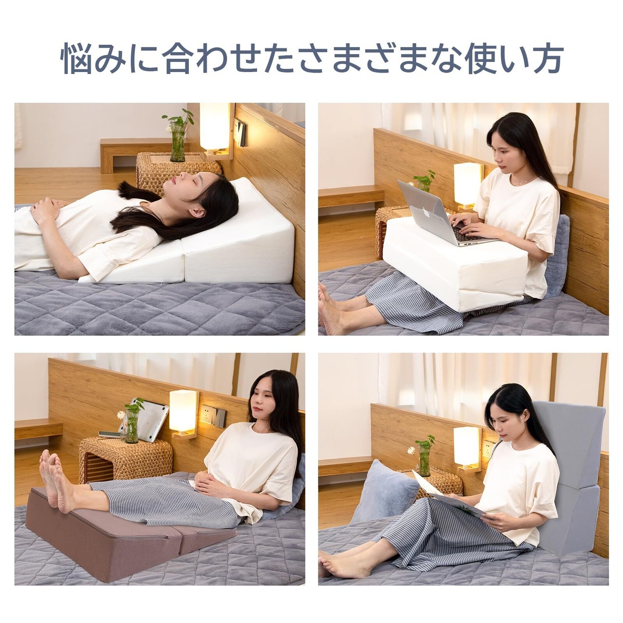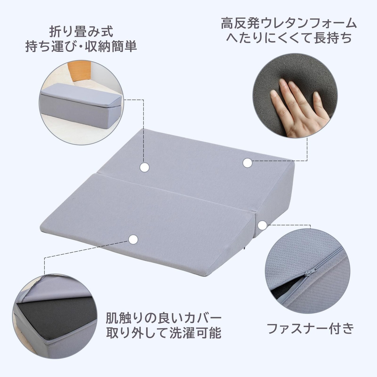 【在庫セール】IMIEE 三角クッション 三角枕 背もたれ 腰枕 傾斜枕 足まくら なだらか枕 斜めマット 横向き寝 クッション 逆流性食道炎 体位変換 二つ折り枕 腰クッション 足枕 高反発 読書用 妊婦 お年寄り 体圧分散 体位変換 テレビ枕 カバー洗える 快眠サポート (グレー)