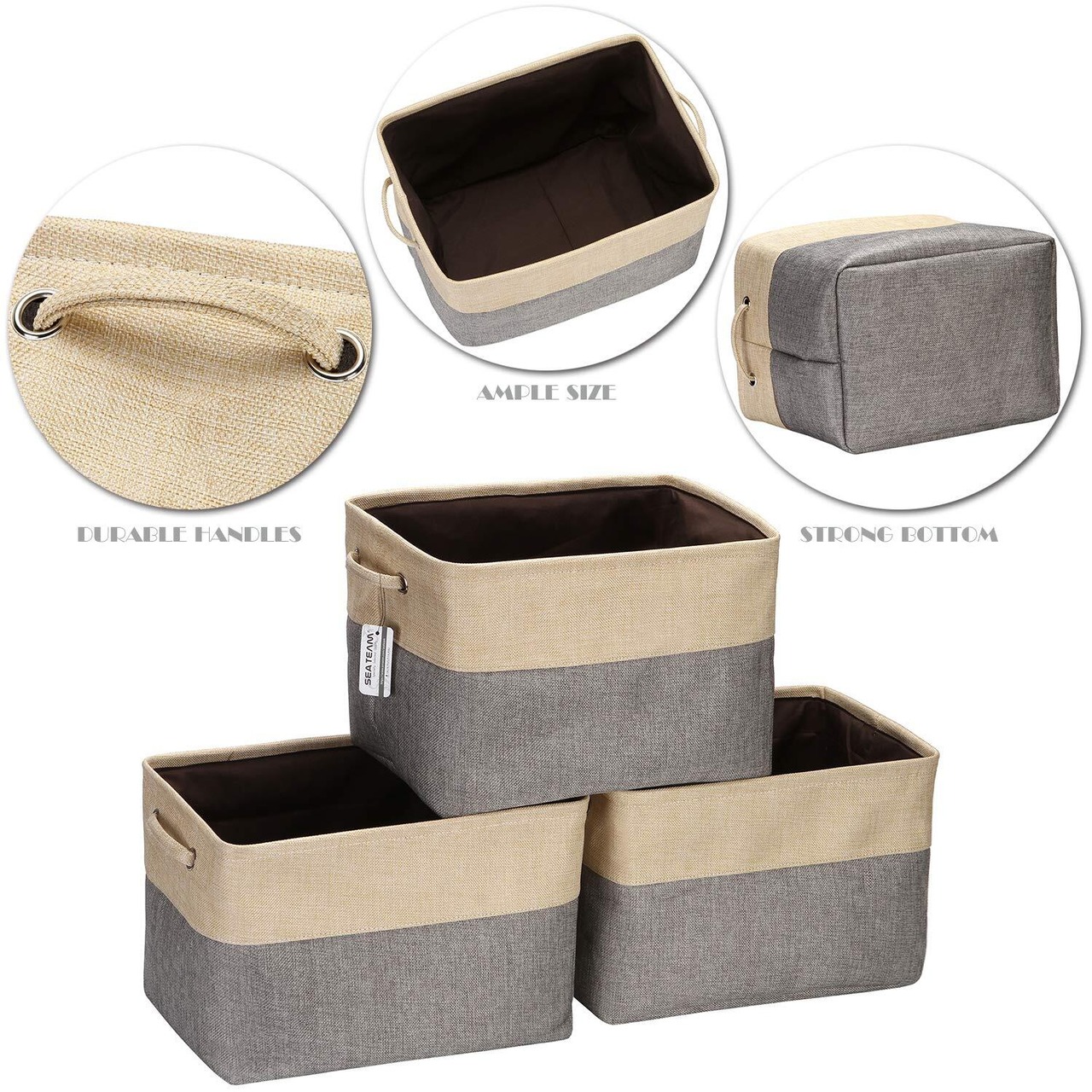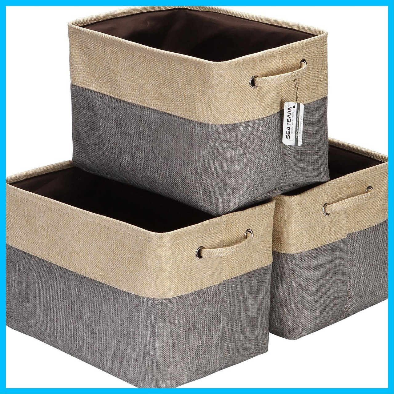 Sea Team 3点セット 収納かご 収納バスケット 洗濯かご ストレージバスケ ット おもちゃ収納 小物入れ おしゃれ 折り畳む式 キャンバス オックスフォード生地 取っ手付き(38*25*25cm グレー)