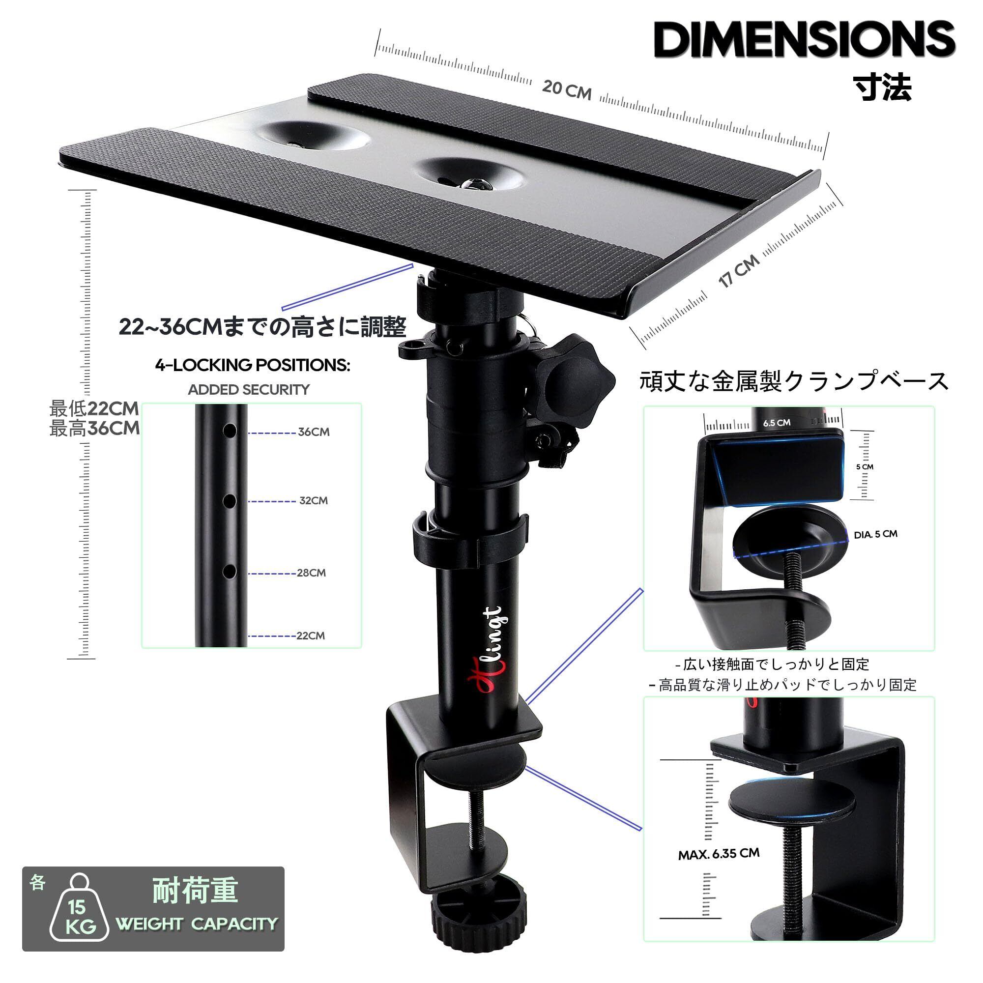 【特価商品】スピーカースタンド 卓上 小型 クランプ モニタースピーカースタンド 高さ22~36cm,角度-10°~+10°調整可能 天板17×20 cm,3~4インチのモニタースピーカー、ブックシェルフスピーカーに適しています。スピーカー台 クランプタイプで省スペース [2個入り]