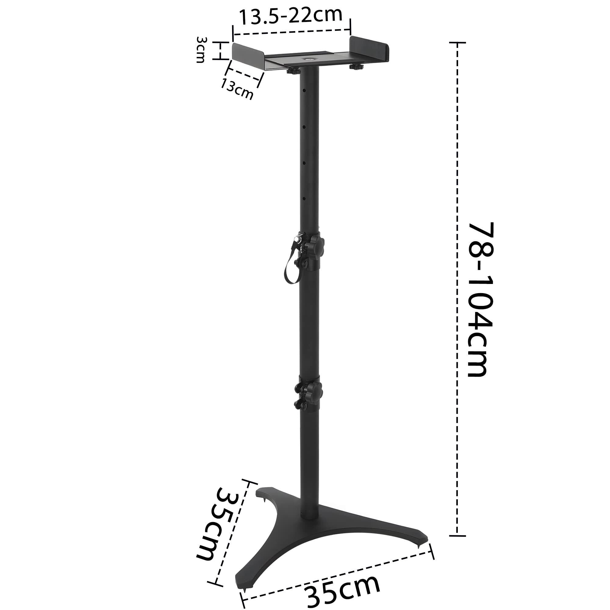 【製品情報】78 cm〜104 cm高さ調整、天板奥行13 cm x幅(13.5〜21)cm、ほぼすべてのスピーカー、荷重能力:15 kg