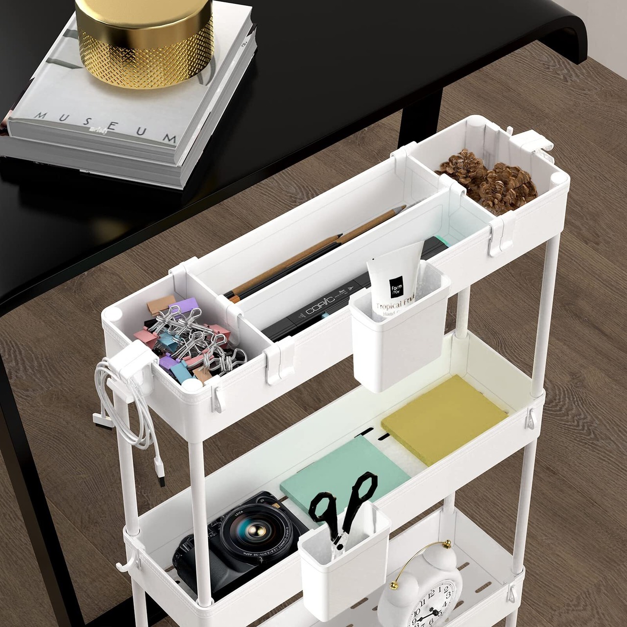 SPACEKEEPER キッチンワゴン 隙間収納 スリム 13cm 収納カップ 仕切板付き 多機能 小物 食品 調味料 キャスター付き 組立簡単 浴室 台所 冷蔵庫横 3段 ホワイト