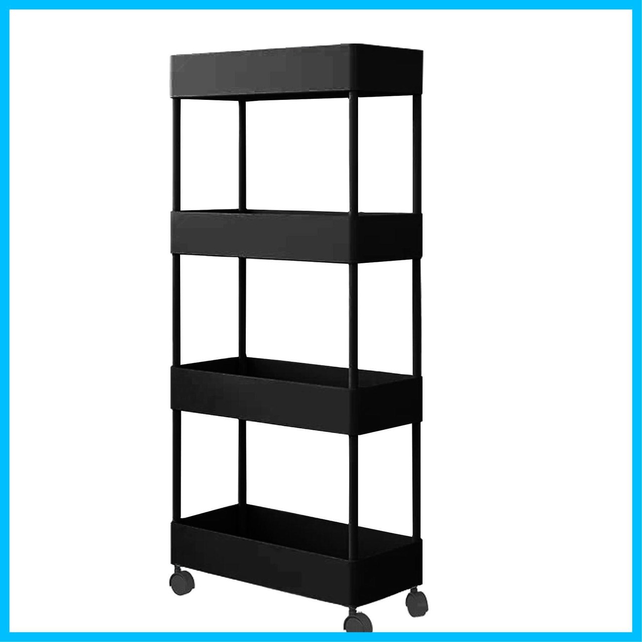 【特価セール】AYO キッチンワゴン 隙間収納 スリム 13cm 18cm 22cm 収納ラック 収納カート キャスター付き おしゃれ ペットボトル 小物 台所 洗面所 冷蔵庫横 (四段式-22cm, ブラック)