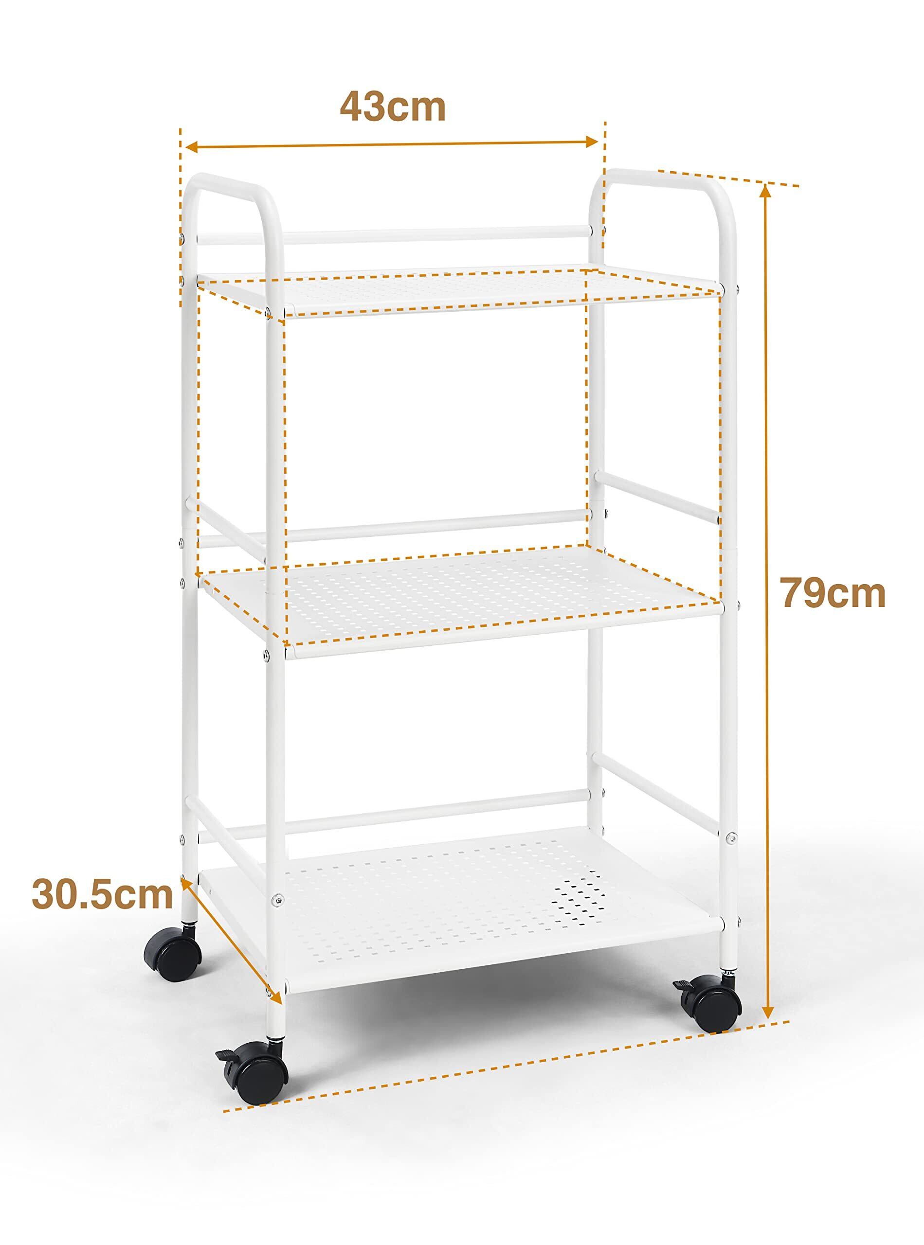 サニーポイント スチールラック 収納ワゴン デスク下収納 サイド収納 ストッパー付きキャスター キッチンラック (3段,白)