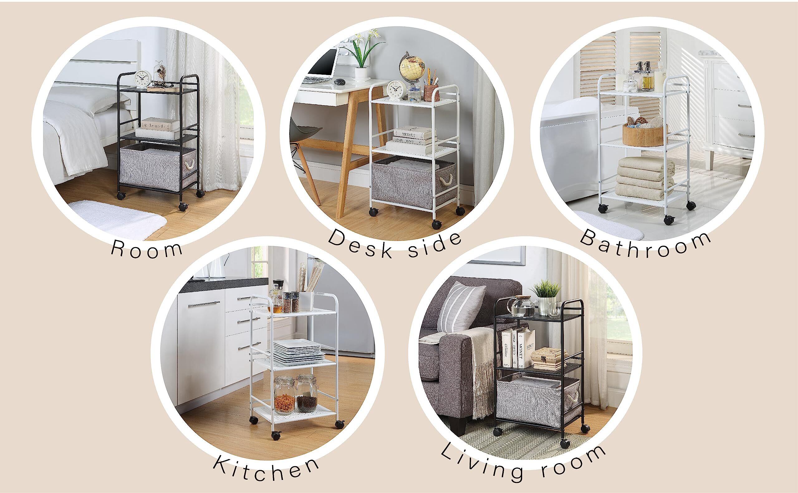 【新着商品】サニーポイント スチールラック 収納ワゴン デスク下収納 サイド収納 ストッパー付きキャスター キッチンラック (3段,白)