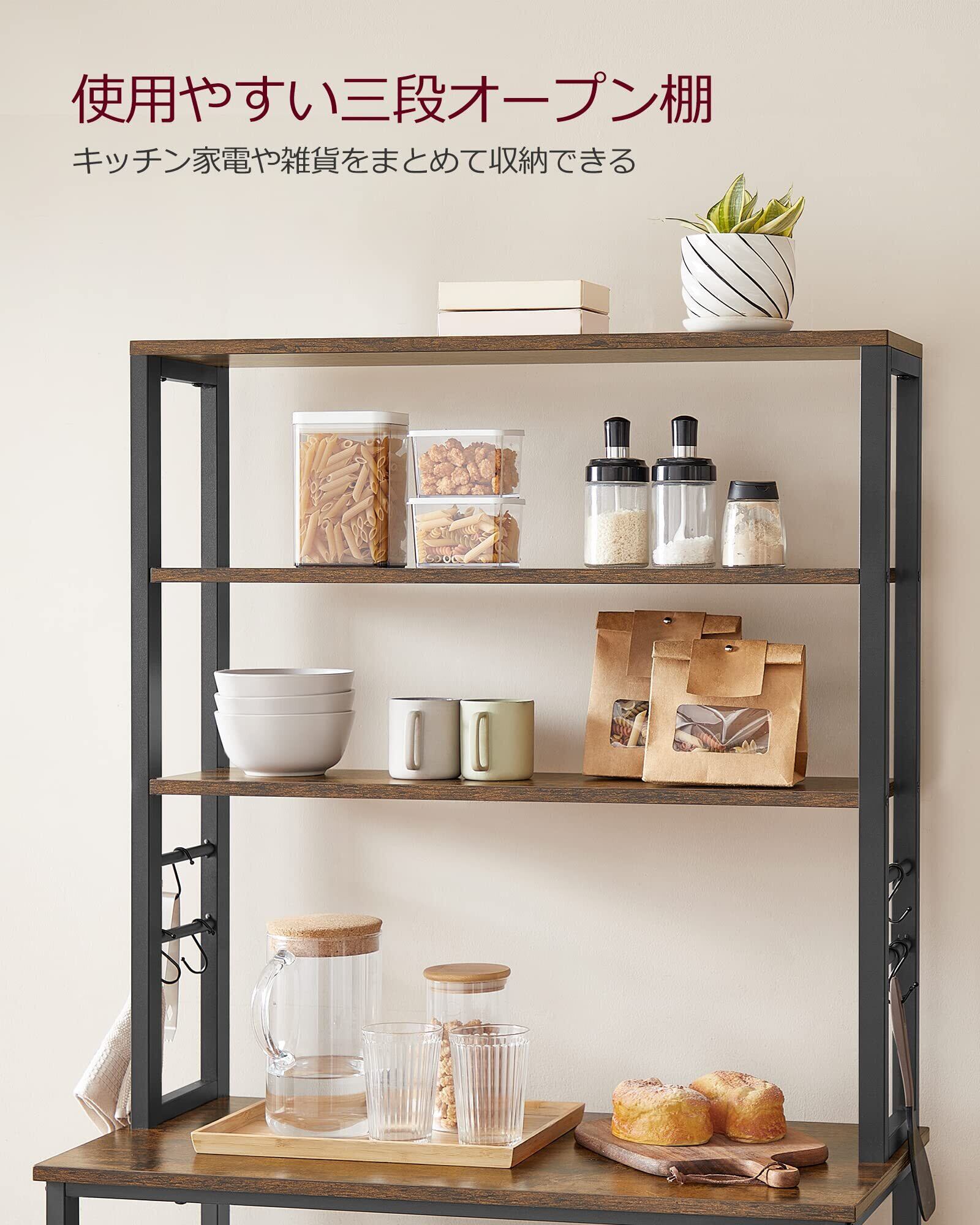 【数量限定】VASAGLE レンジ台 キッチンラック レンジボード 大型レンジ対応 高耐荷設計 可動棚 高さ167cm 幅80 シンプル 電子レンジ ボード 収納 食器棚 6個S字ラックを付き KKS019B01