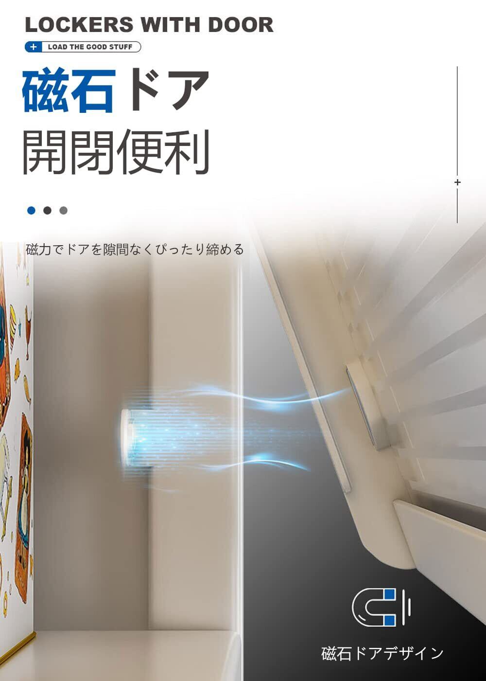 【高さ調節ロッカー】ロッカーにある鉄板の置く位置(下から第二段の収納エリア)は変えられます。5段階(毎段階の距離は5cm)に調整可能、収納物に合わせてお使いいただけます。ロッカーは密閉設計で防塵効果があり、ネズミやゴキブリなどの生き物対策も効いています。