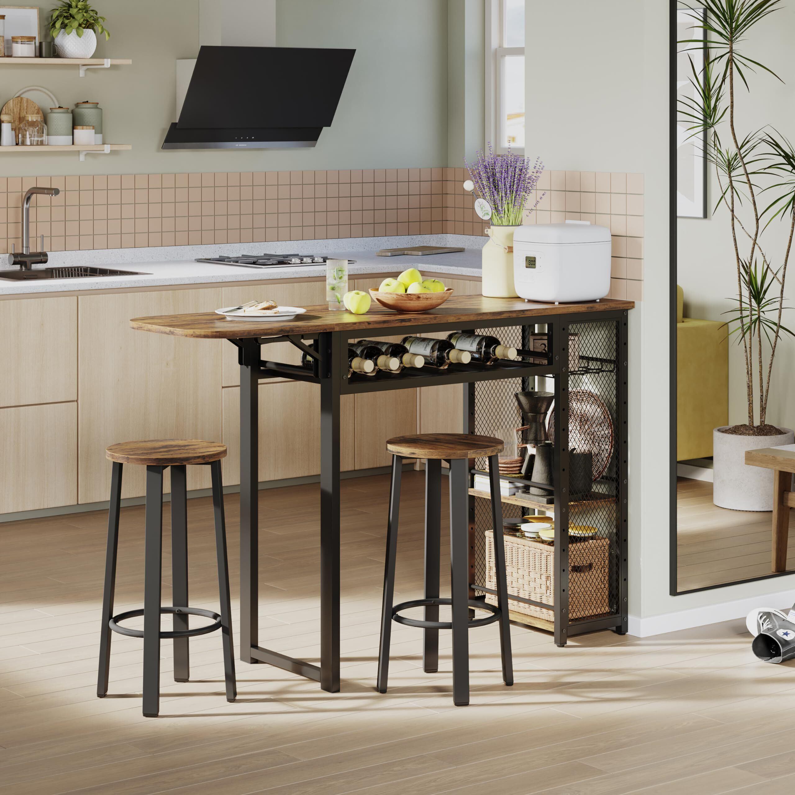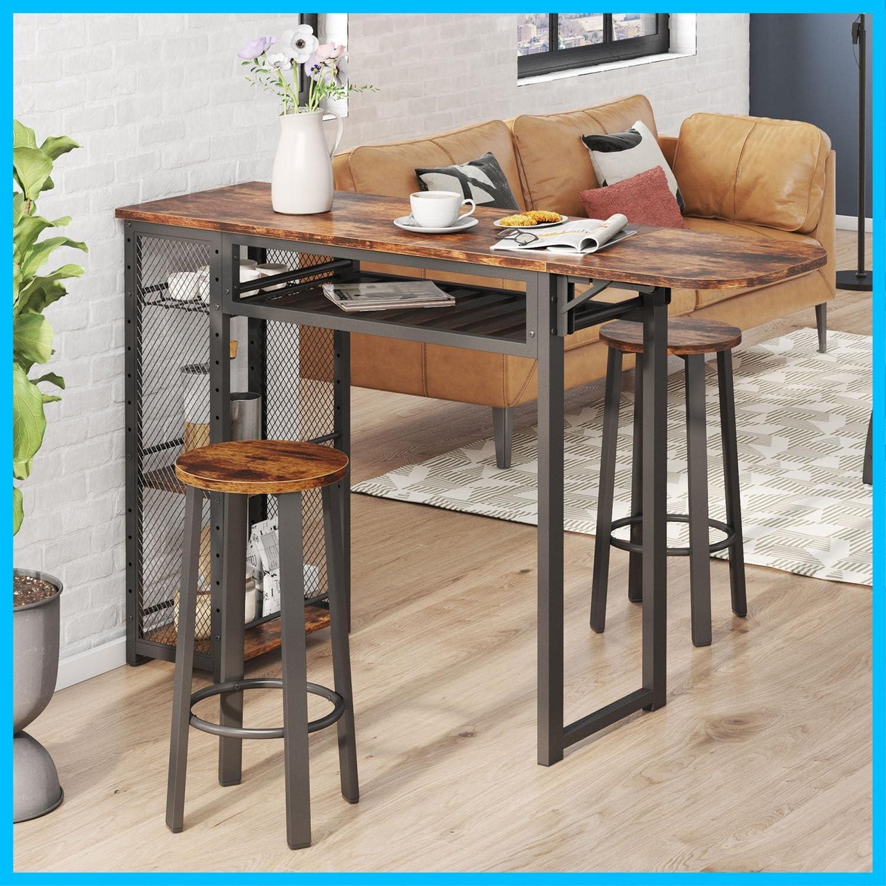 Bestier カウンターテーブル セット 幅140/100×奥行き40×高さ91cm ダイニングテーブルセット 二人用 バーカウンター ハイテーブル バーテーブル 省スペース おしゃれ PCデスク 作業台 木目調 ビンテージ(テーブル1台 チェア2脚)