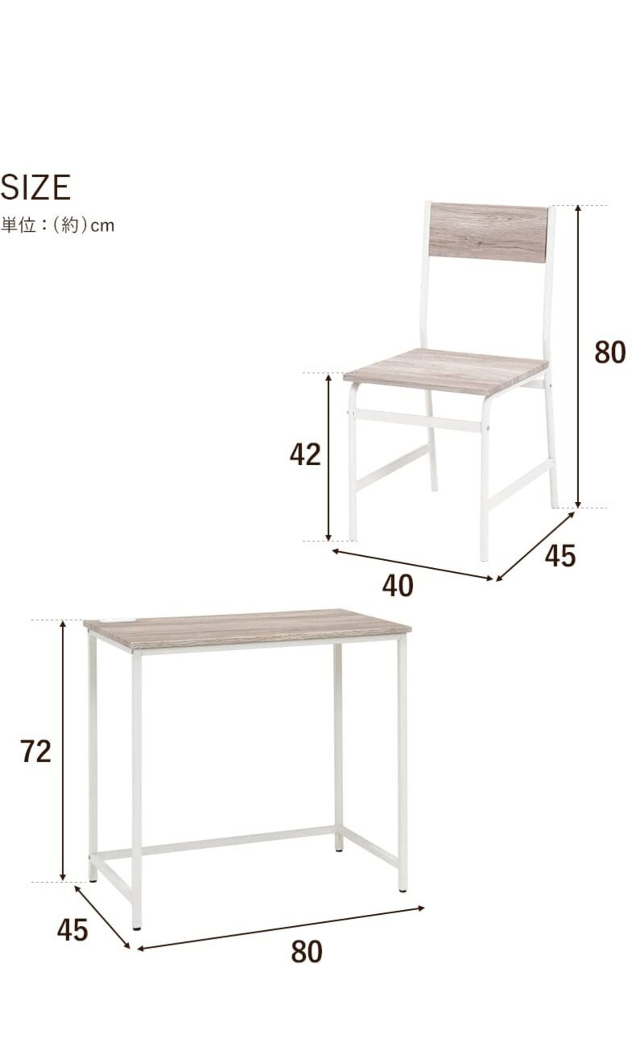 【本体サイズ】テーブル:(約)幅80×奥行50×高さ72cm チェア:(約)幅45×奥行50×高さ76×座面高42cm