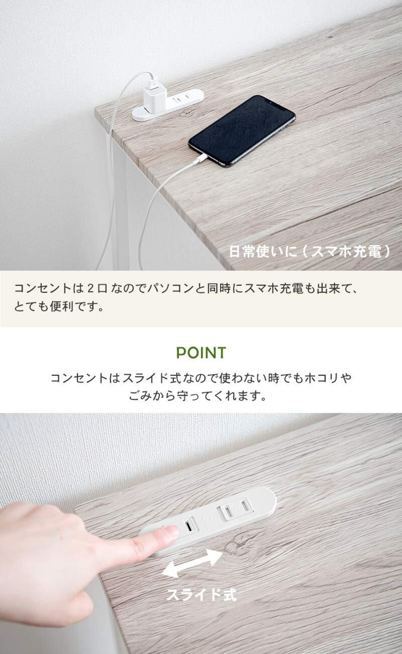 【デスクワークに最適なチェアセット】PCやタブレットなどを充電できる1500Wの2口コンセント付きなので、在宅ワークやオンライン授業などでも活躍。延長コードを買い足す必要がありません。