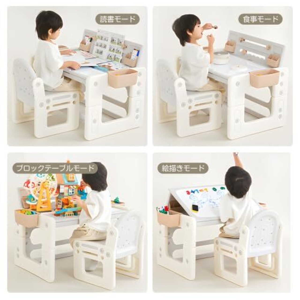 BTM キッズデスク チェアセット 4way お絵描き机 ブロックデスク 高さ調整 天板角度調整 子供机セット 収納ケース ブックスタンド ペン立て 子供用デスク 子供テーブル 子供机 学習机 キッズテーブル チェア セット 多機能 省スペース お絵描きデスク 棚付き
