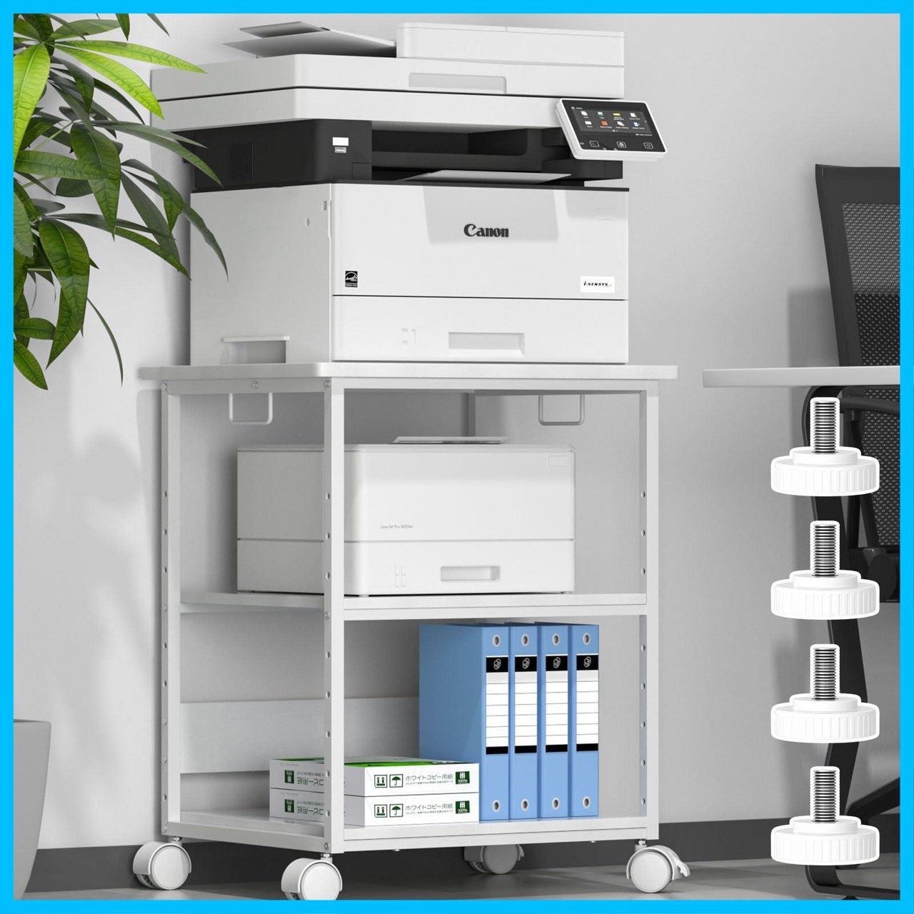 【新着商品】[W60*D50*H70cm]プリンター台 キャスター付き パソコンラック 中棚高さ9段階調節 両側取っ手付き pcワゴン オーディオラック デスク下 収納 棚 木製 袖机 スリム オフィス 収納 オフィスワゴン (ホワイト)
