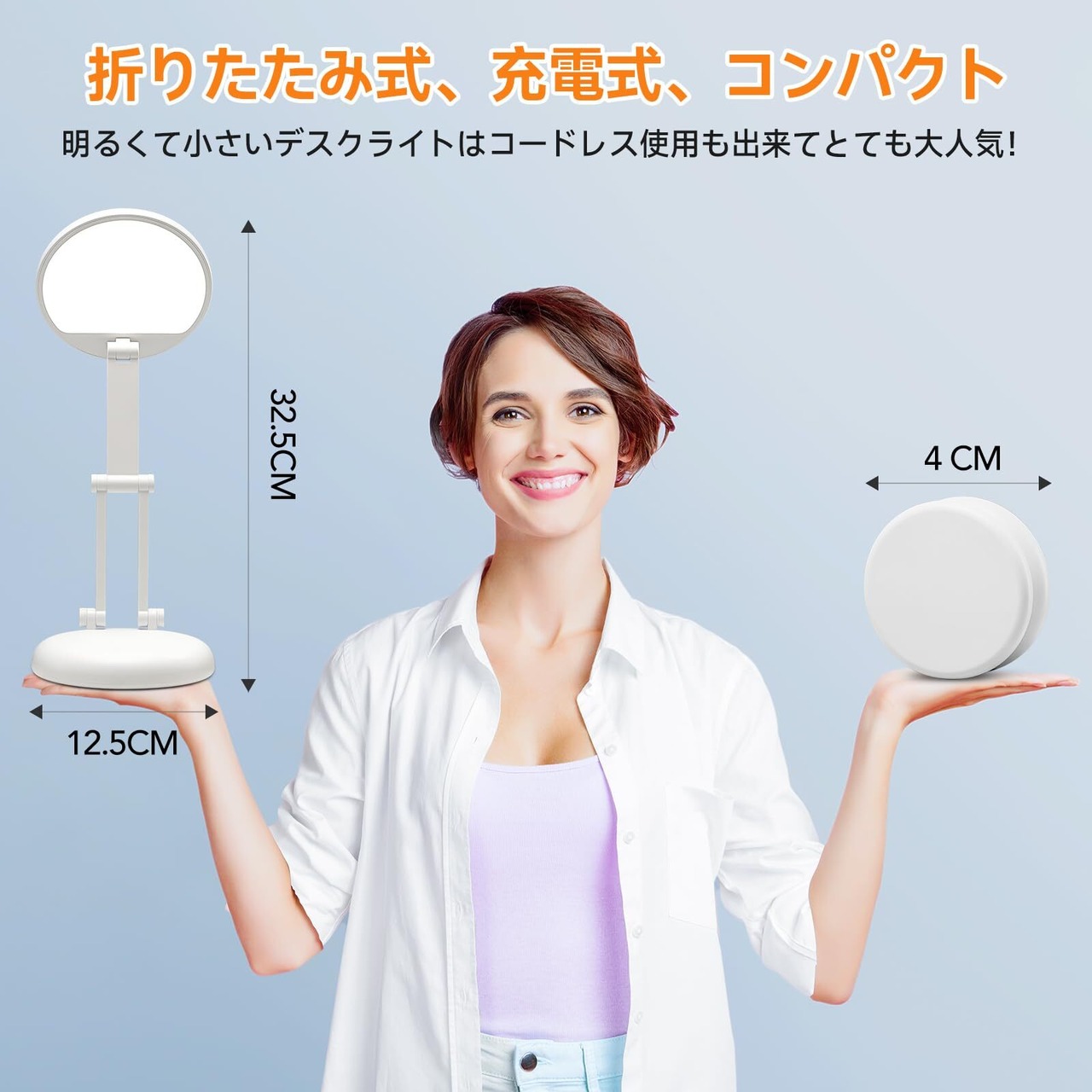 【折り畳み・コンパクト・収納便利】折りたたみ式のデスクライトは三つ折りデザインで、携帯便利と収納便利です。コンパクトな卓上ライトは机が小さくても困らなく、比較的省スペースです。コンパクトで軽量、純白のシンプルなデザインで、室内でご使用いただけます。折り畳むことができるため、コンパクトに収納しておけます。学習机と仕事机の上を整理整頓しておきたい方にお勧めです。デスクライト、スタンドライト、卓上ライト、電気スタンド、デスクスタンド、テーブルランプ、読書灯にぴったりです。
