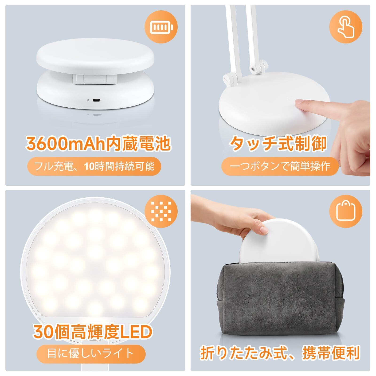 kufire 卓上ライト デスクライト led ライト 充電式 【3600mAh大容量電池】デスクライト おしゃれ ライト スタンド ライト 折りたたみ テーブルライト 無階段調光/記憶機能の電気スタンド コードレス 間接照明 おしゃれ 置き型 読書灯 テーブルランプ 台灯 目に優しい デスクライト コンパクト 収納・携帯便利 ホワイト