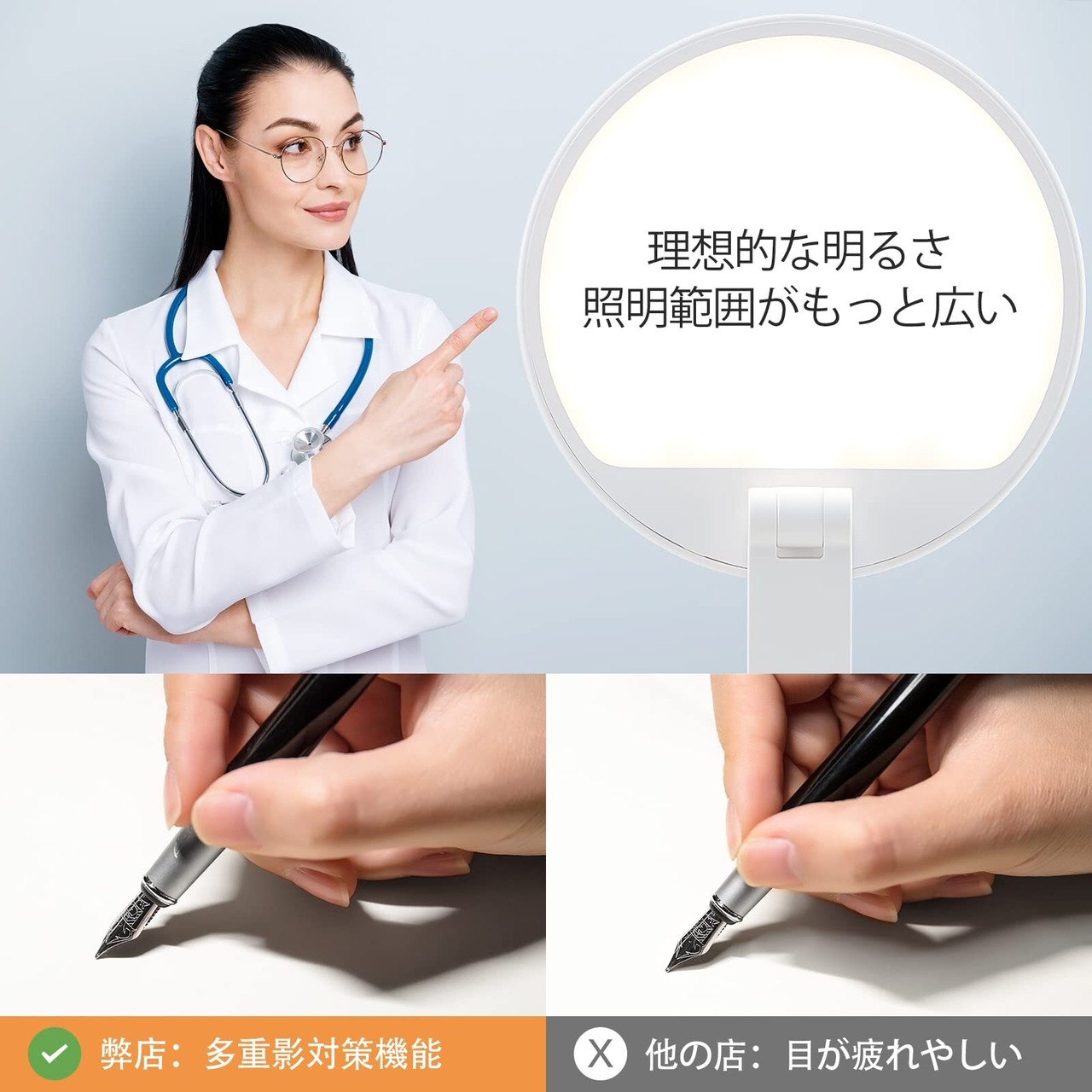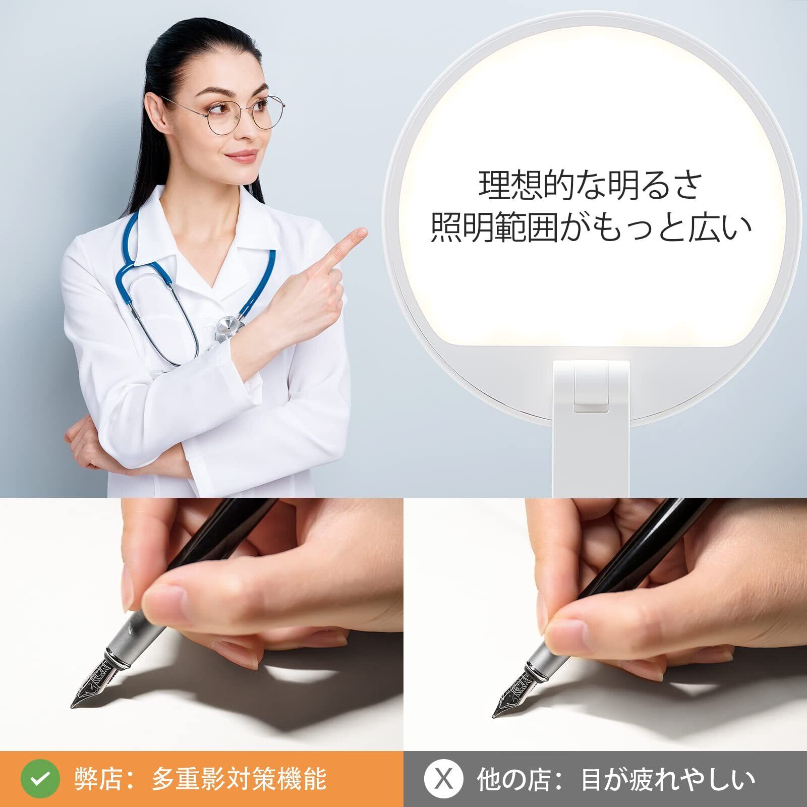【目に優しいLEDデスクライト】デスクライトは高品質とちらつかないのLED光源を採用し、大平面発光のデザインにより、多重影やムラなどの問題がない。目に優しい卓上ライトは柔らかく均一に自然光が広がります。長時間の仕事、勉強でも目が疲れにくく、眼が疲れることが軽減します。電気スタンドはCRI>80、演色指数80以上で色彩の還元度が高く、鮮明な視覚をあげます。眩しさガードが付く卓上スタンドライトは子供にも大人にも目に優しいデスクライト、卓上ライト、電気スタンド、スタンドライト、デスクスタンド、テーブルランプ、読書灯です。