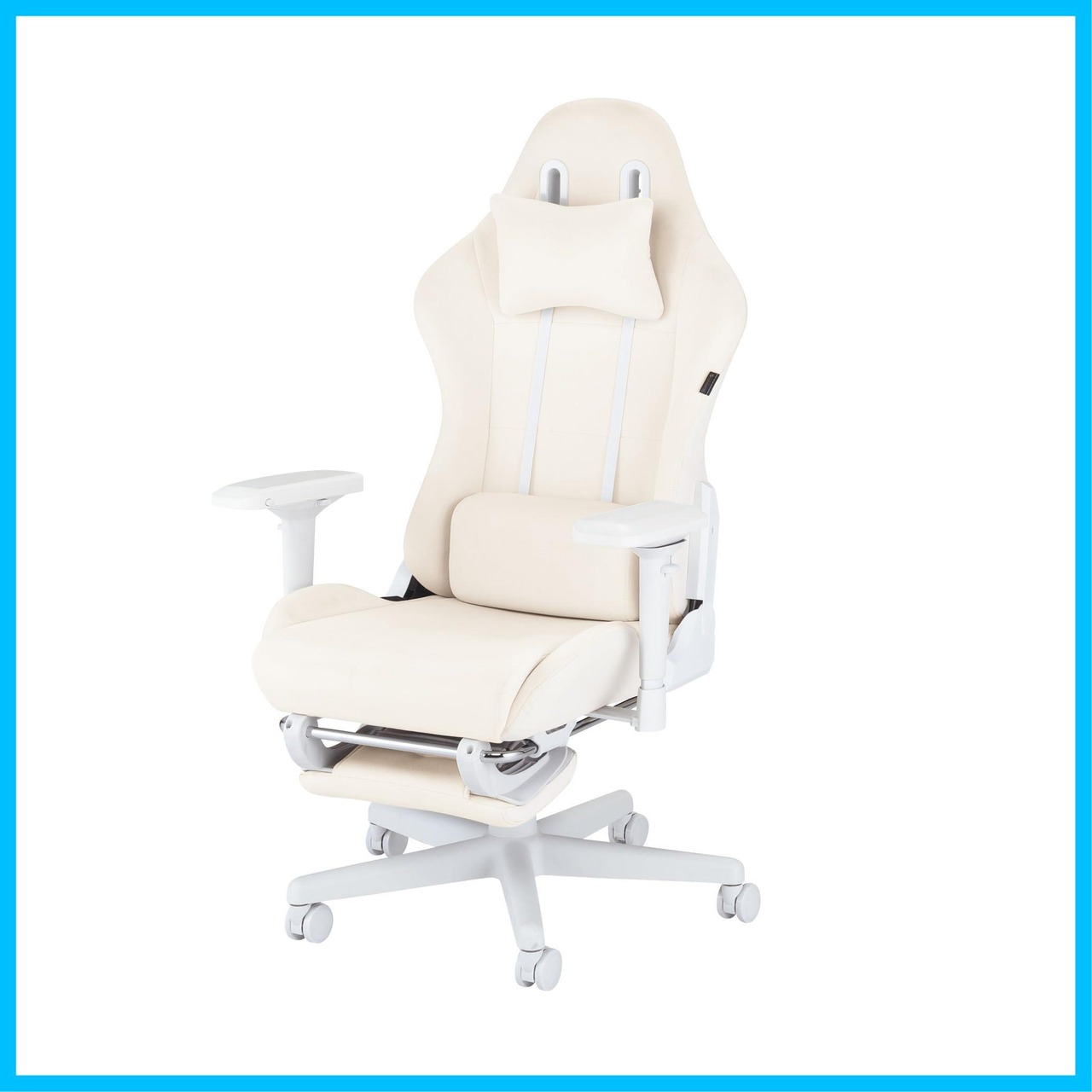 Wisteriaゲーミングチェア ファブリック オットマン付 デスクチェア (アイボリー, 高身長シリンダー)