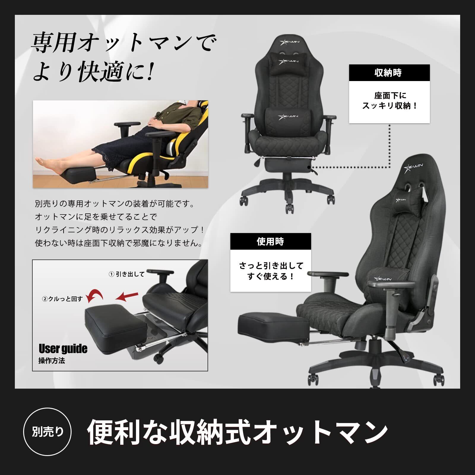 E-WIN ゲーミングチェア ファブリック 布地 メッシュ 蒸れない リクライニング 前傾 3Dアームレスト 座面角度無段階調整 ドリンクホルダー付属 肉厚 専用オットマン取り付け可能 腰痛対策 D9シリーズ オフィスチェア 黒 ブラック D9-BK