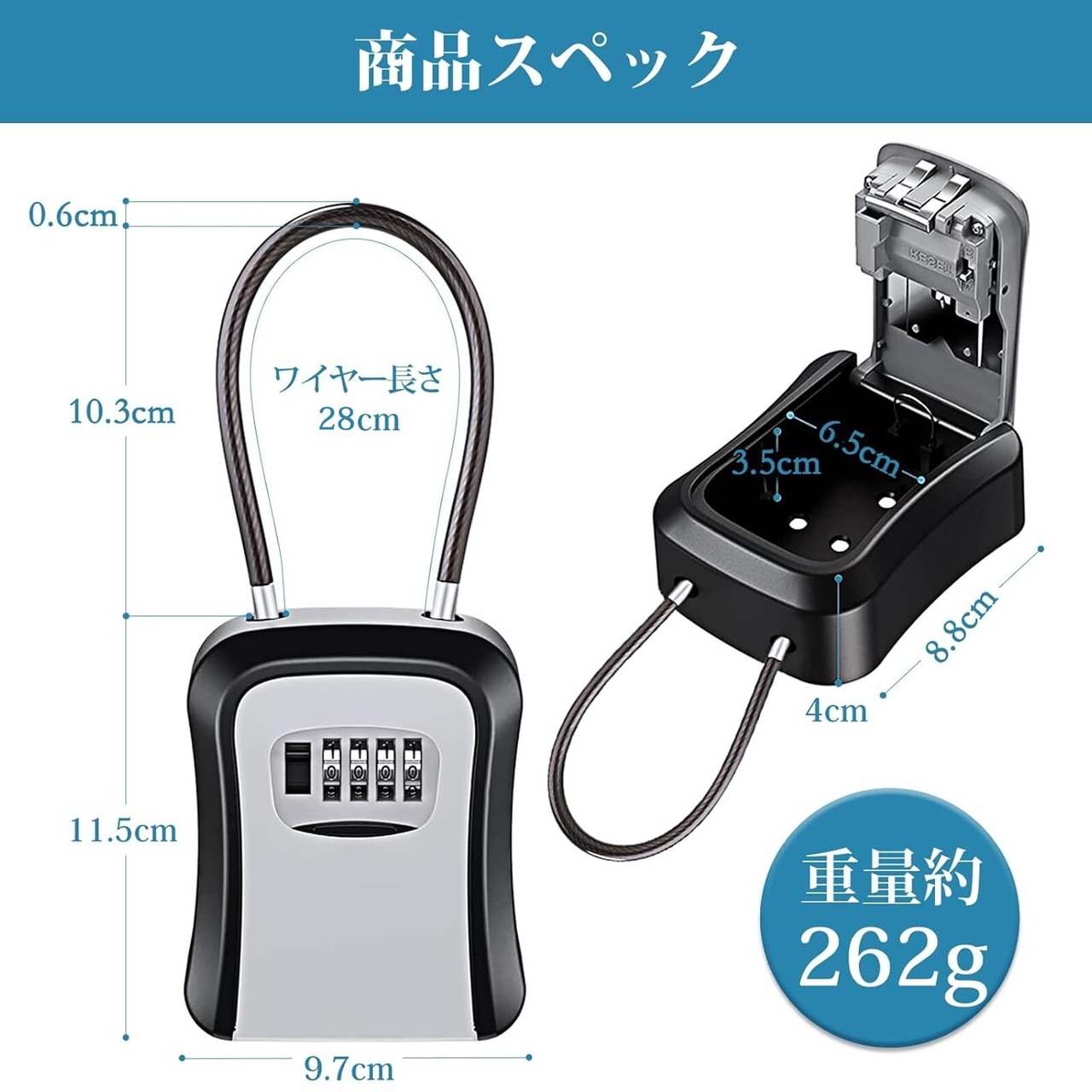 Supulin キーボックス 屋外 ダイヤル式 セキュリティボックス 大容量 鍵収納 ワイヤータイプ 4桁暗証番号 壁掛け 鍵ボックス キー収納 防犯 防水 盗難防止 玄関 車 工事現場 倉庫 会社 アウトドア 家庭用 グレー