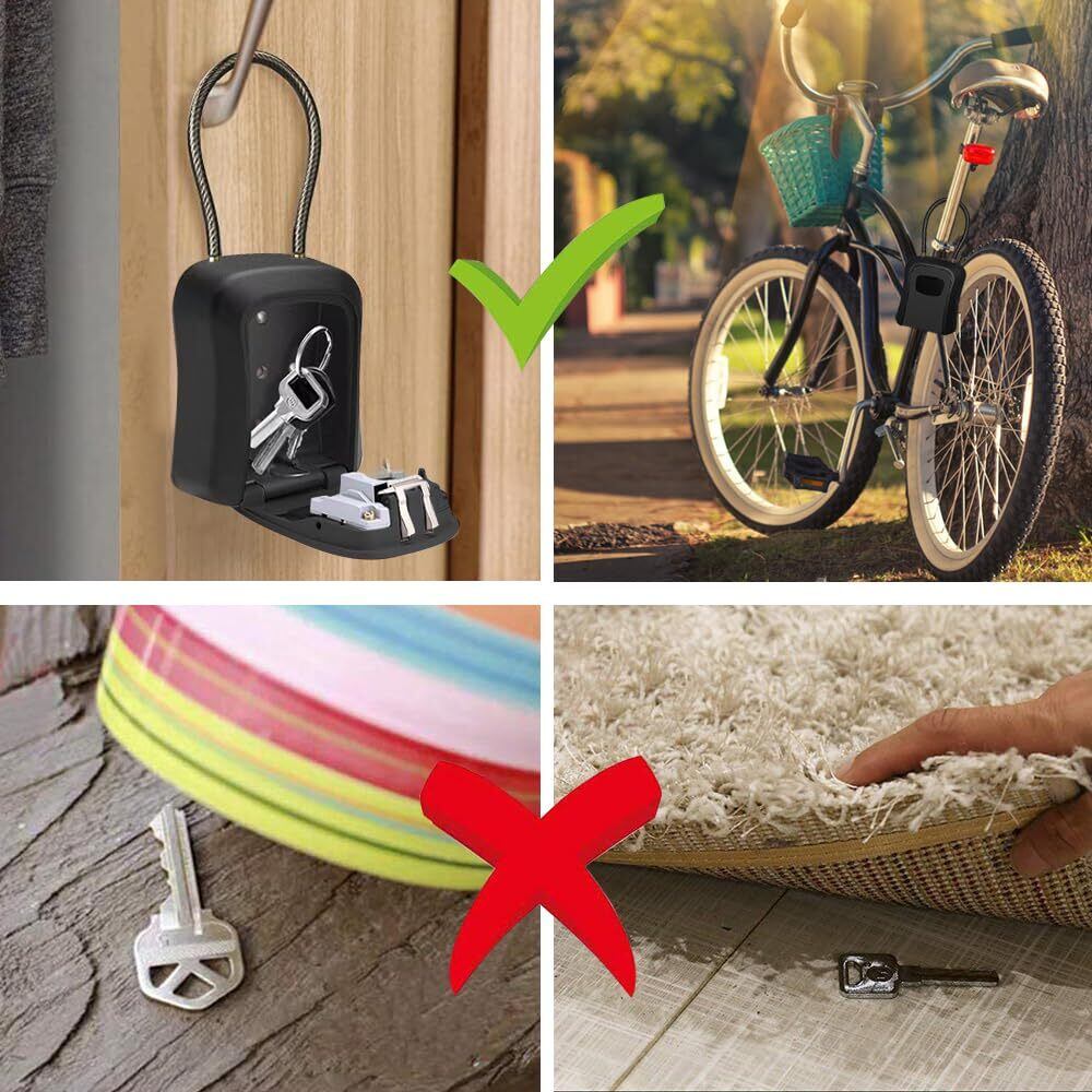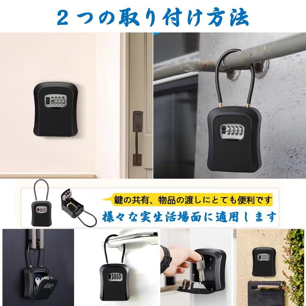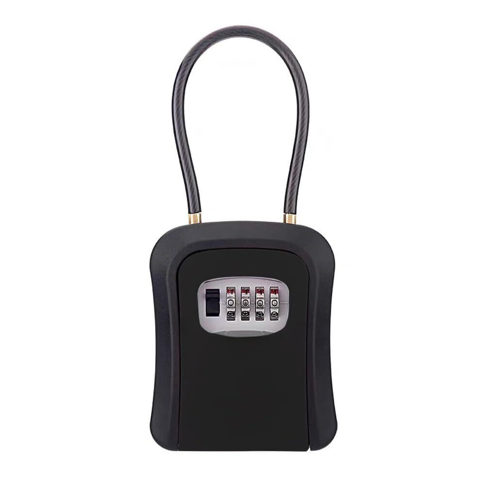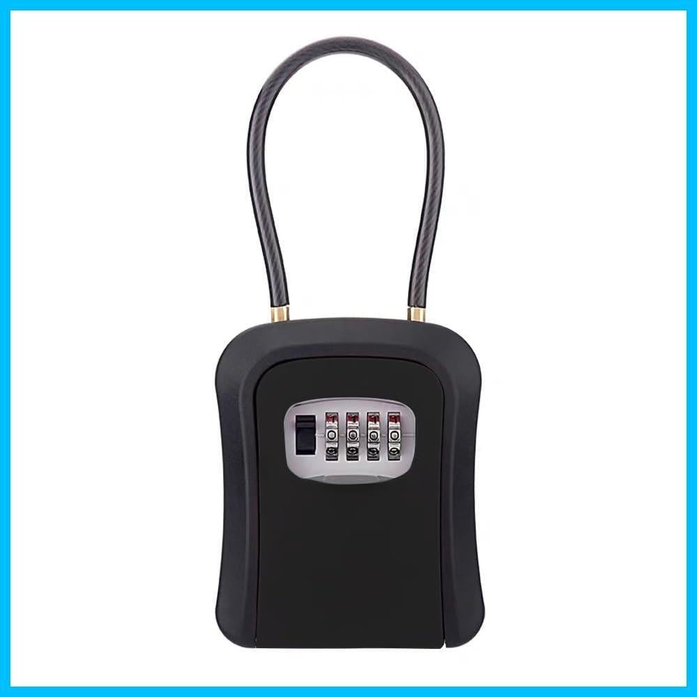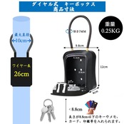 キーボックス 鍵共有ボックス 鍵収納ボックス ワイヤー式 壁掛け式 ダイヤル式 4桁暗証番号 キー収納 南京錠 防犯性 鍵共有 玄関 倉庫 工事不要 【文君の店】 (プラスチック製、黒色)