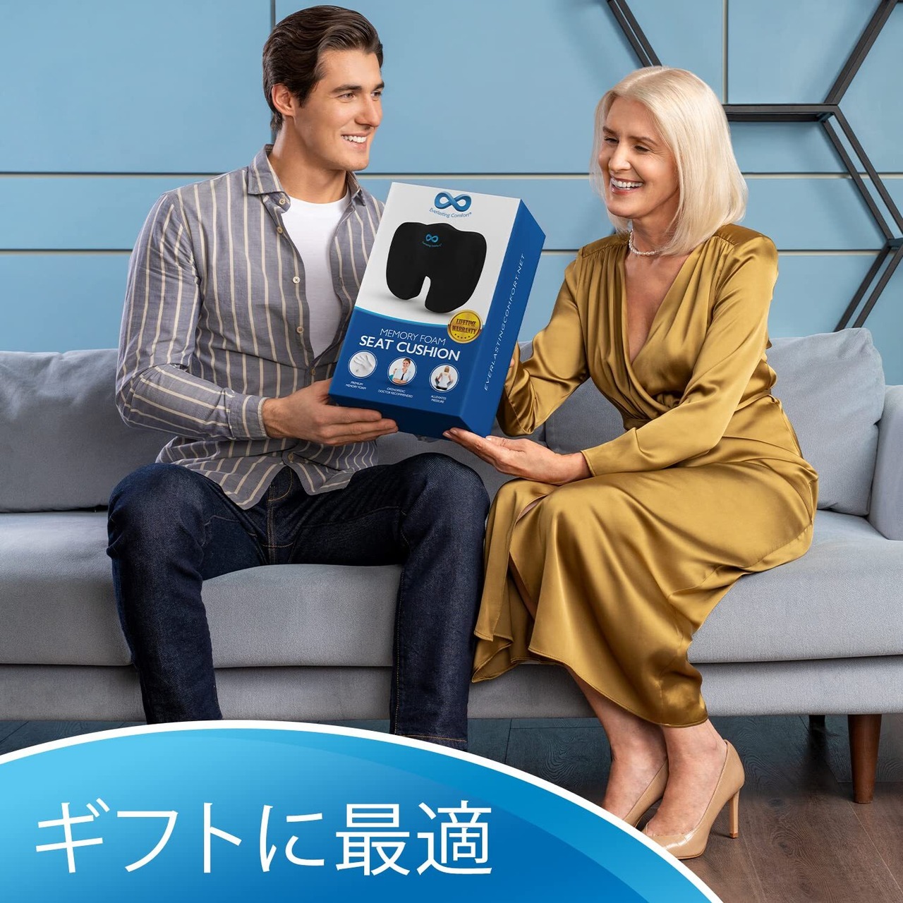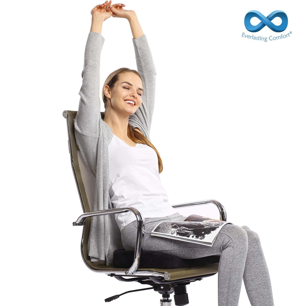Everlasting Comfort 100% メモリーフォーム シートクッション – 腰痛 & 坐骨神経痛対応 – 骨盤矯正クッション – 車・オフィス・ゲーミングチェアに最適 – 滑り止め付き & 洗えるカバー