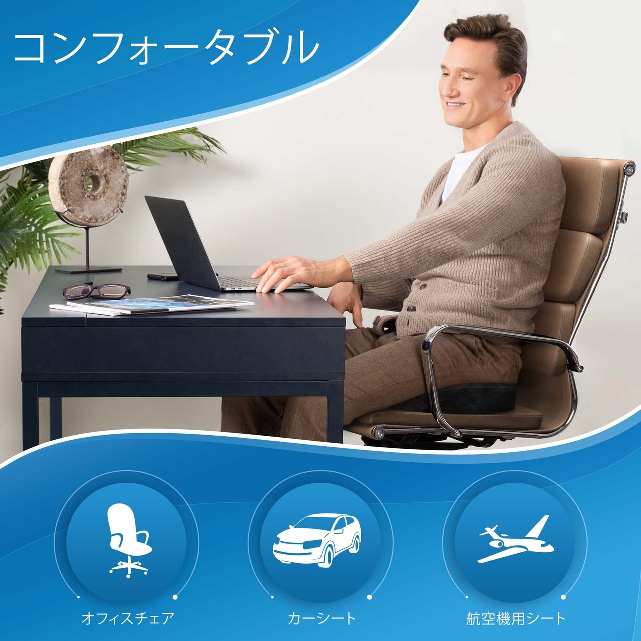 滑り止め加工で安定感アップ – 特殊な滑り止め底がしっかり固定し、座っている間もズレにくい設計。オフィスチェアや車のシート、ダイニングチェアなど幅広く使用可能。