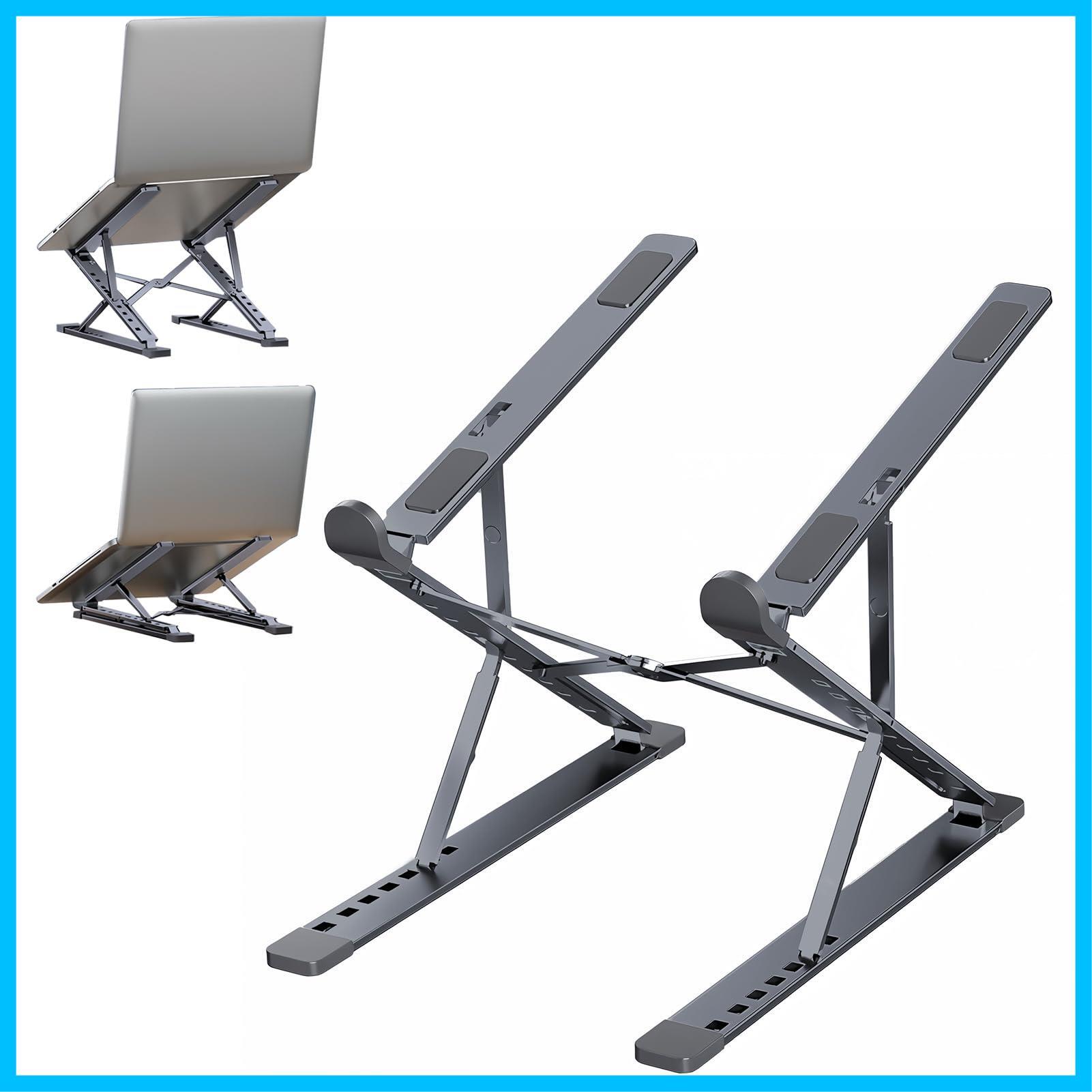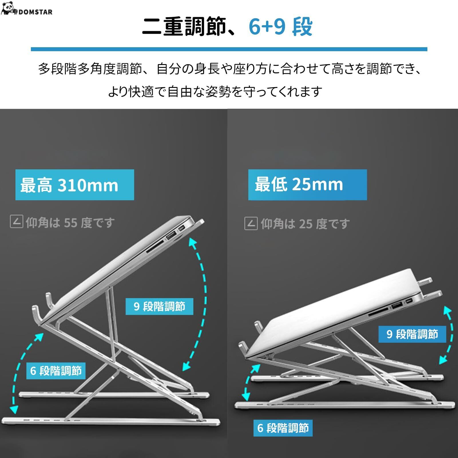 Domstar ノートパソコンスタンド 高さと角度の調整 折りたたみ式 滑り止め 持ち運び アルミ合金製 pcスタンド 収納袋付き ダークグレー