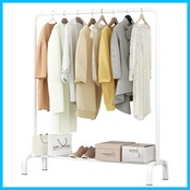 【スペースを活用】:ハンガーラック 狭いお部屋でもスペースを効果的に活用して、靴、帽子、衣類などを整理整頓できます。ロングコートやワンピースなどの長い衣類も十分に収納可。