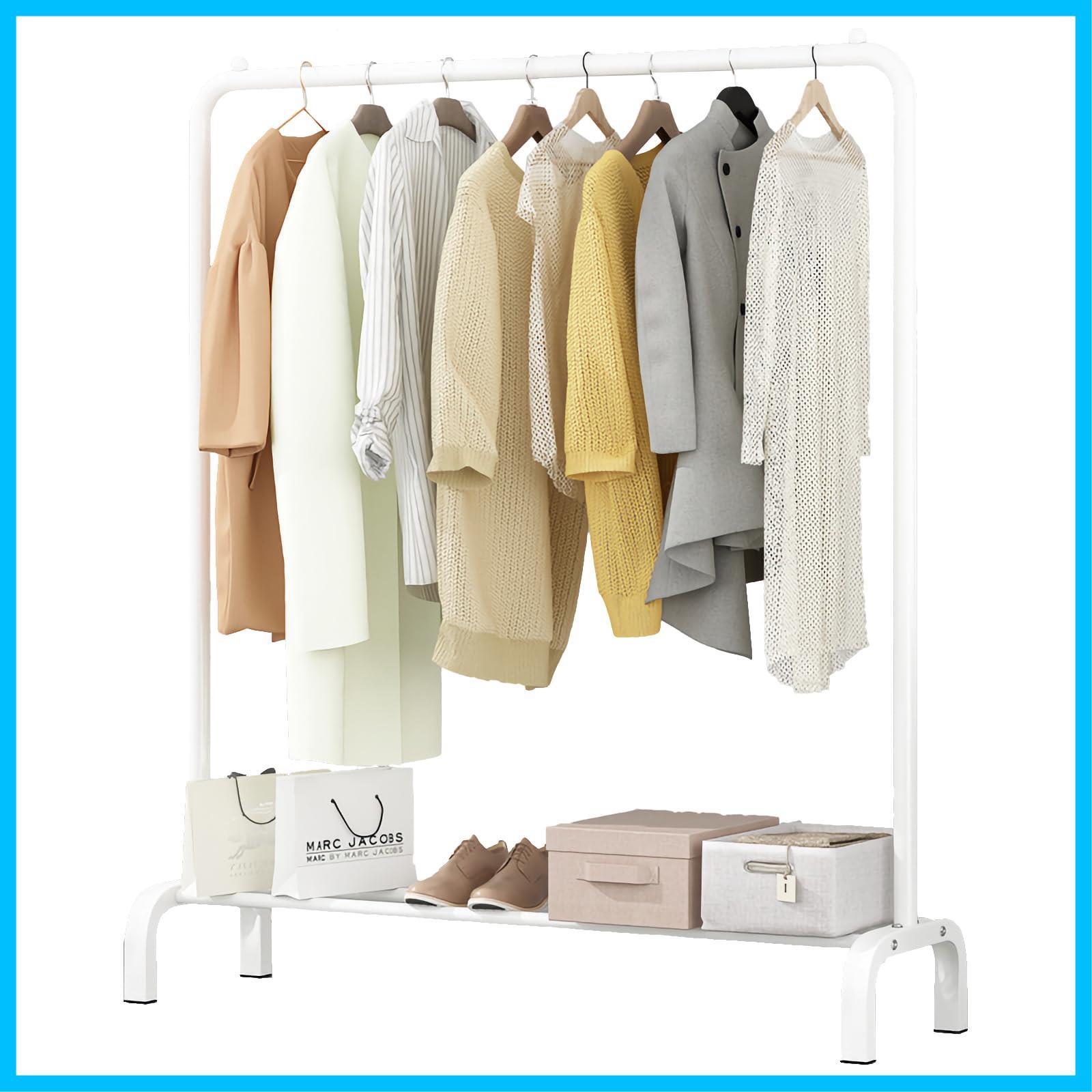 【用途広い】:ハンガーラック 下部の棚には靴やカゴを置くのに十分なスペースがあります。軽量かつ便利で、ベランダでの洗濯物干しや室内での衣類収納に最適です。ガーメントラックの上部には2つの滑り止めビーズがあり、衣服の脱落を防ぎ、美しさをさらに引き立てます。
