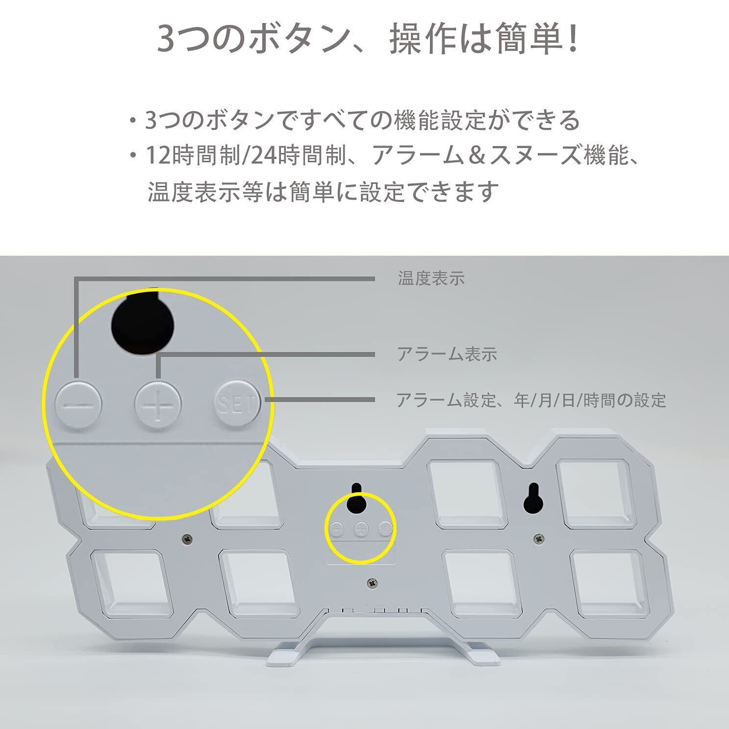 【新着商品】KOSUMOSU デジタル時計 LED 壁掛け 置き時計 明るさ自動感応 3D LED CLOCK 目覚まし時計 10インチリモコン付きナイトランプ年/月/日温度表示白色のキッチン時計(ACアダプター付属無し)ACD-210W