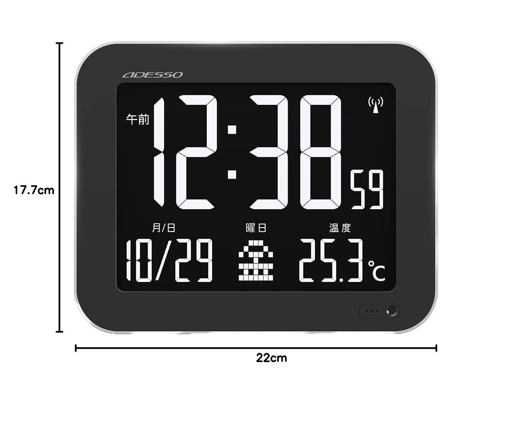 ADESSO(アデッソ) デジタル時計 壁掛け 置き時計 おしゃれ 電波 置き掛け兼用 大型 日付表示 温度 アラーム ブラック