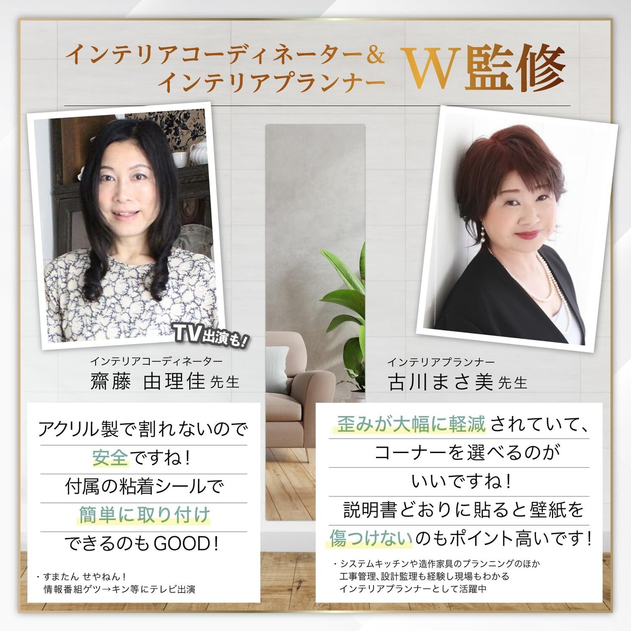 【皆様のお悩み解決】クローゼットのドアに貼りたい、落下して飛散するのが怖い、とがった角でけがをしそう、賃貸住宅に壁掛け鏡を設置したいけどできない、などお悩みと不安を解決する鏡です。