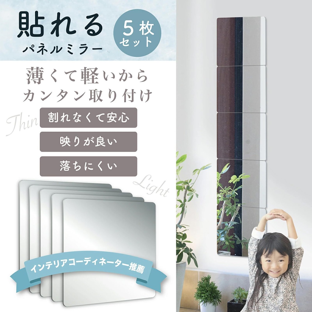 【30×30cm ・5枚セット】全身鏡 姿見鏡 どこでも貼れる割れない鏡 壁掛け ミラー 貼る鏡 アクリルミラー 飛散防止 穴あけ不要 便利 軽量 浴室 玄関 壁 リビング クローゼット