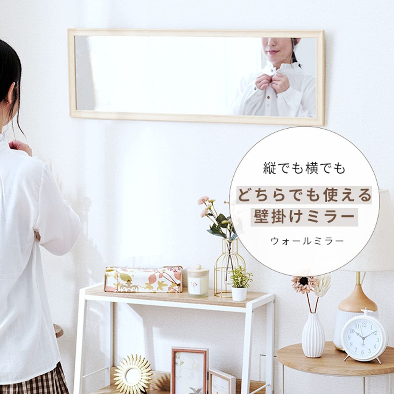 【数量限定】ドウシシャ ウォールミラー 縦でも横でも使える壁掛けミラー 90cm×30cm 飛散防止加工 軽量 姿見鏡 北欧 おしゃれ かわいい 木製フレーム 取付金具 玄関 洗面所 化粧 アンティーク 立て掛けるだけでもOK ナチュラル IMW9030NA
