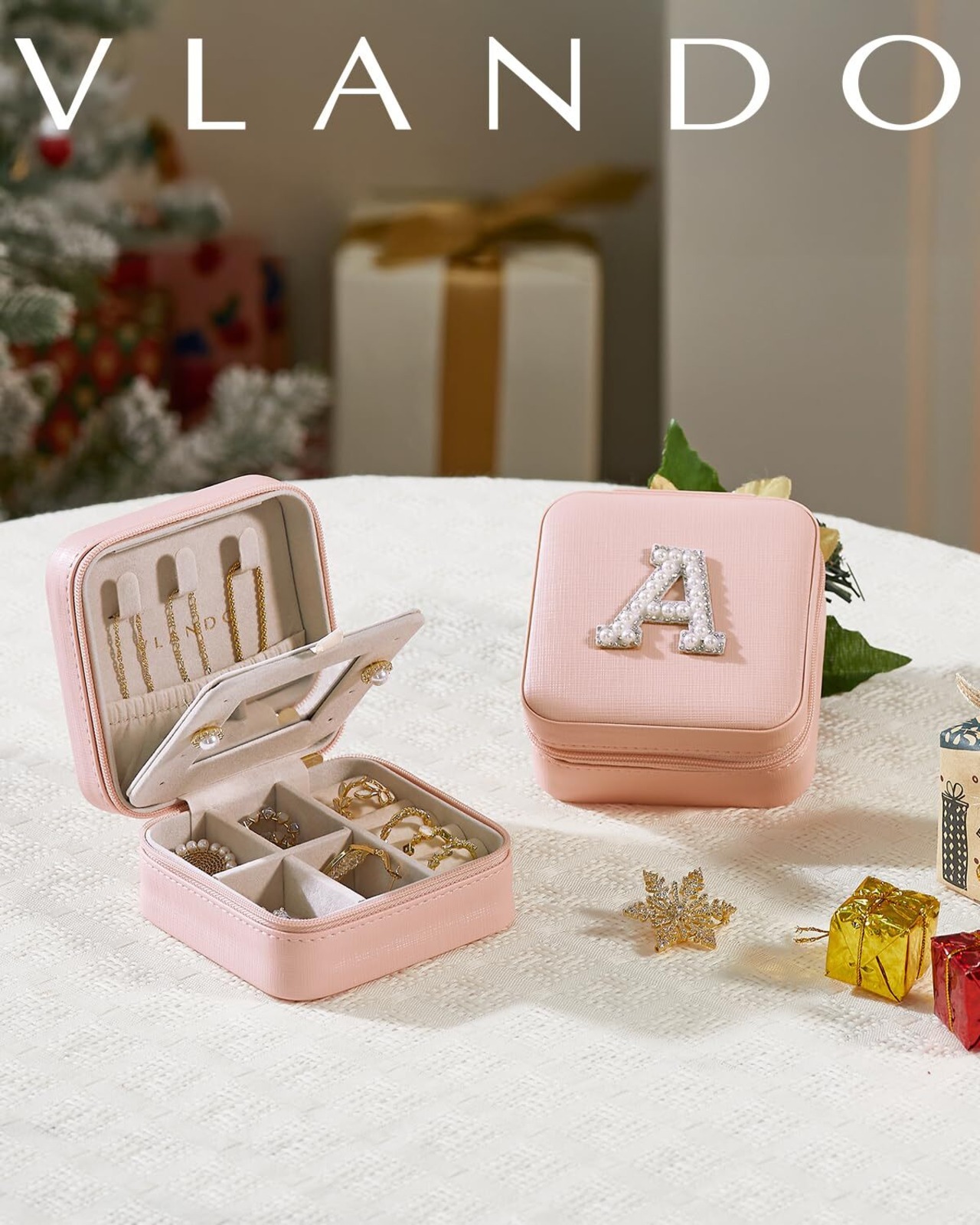 Vlando 誕生日プレゼント女性 ジュエリーボックス 名前入り プレゼント 携帯用 鏡付き ジュエリーボックス トラベル 結婚祝い プレゼント 記念日 バレンタイン 退職 祝い 贈り物(ピンクK)