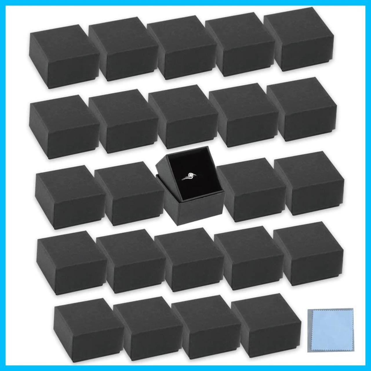 【人気商品】(アウプル) 指輪 ギフト ボックス 正方形 5×5×3cm 24個セット クリーニングクロス 1枚付き リング アクセサリー ジュエリー 収納 ラッピング 箱 無地 クラフト紙 黒 (ブラック)