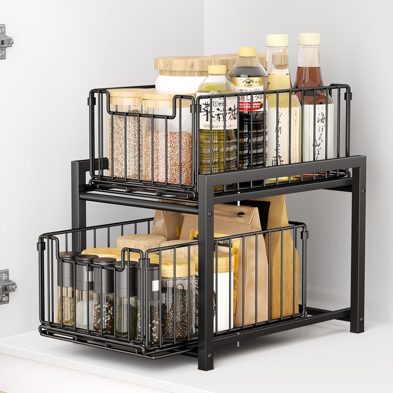TKUIN シンク下ラック 収納 スライド 幅27×奥行37×高さ38.5cm 大容量 引き出し 2段 キッチン収納 洗面台下 収納ラック キッチンラック 台所 整理収納 キッチンストッカー スチール製丈夫 シンク下収納ラック (Black)