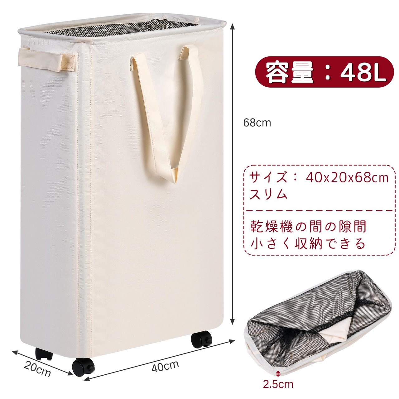 【折り畳み式&持ち運び便利】ランドリー バスケットはスリムのデザイン約40*20*60CM、折り畳んだ後の厚さは約3cmです。ランドリー収納かごは便利なデザインで取っ手を付いて持ち運び便利です。洗濯カゴキャスターは360度回転できるので、移動させ易いし一人暮らしでも持ち運びが便利です。スリムのデザインはコーナーや隅に入りやすいです。