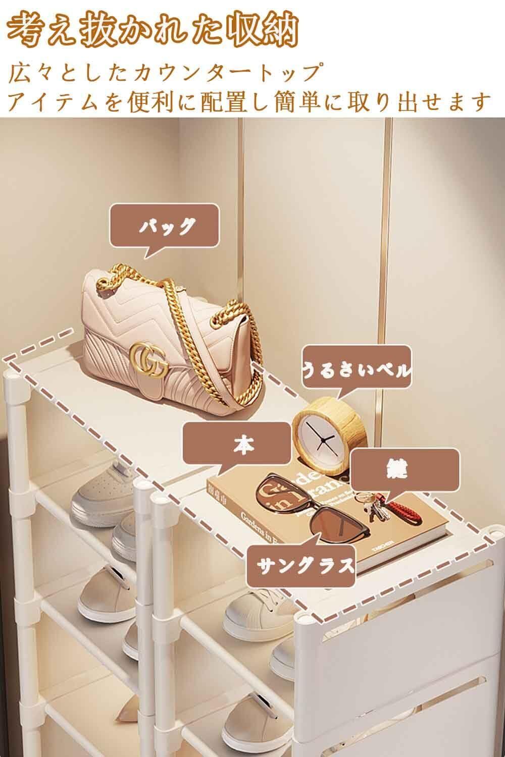 【広々とした収納】シューズラック 大容量最上層は収納デスクとして設計されており、鍵やバッグ、傘などを置きやすくすることができます、部屋をすっきり見せます。この靴棚を使用すると、狭い部屋でも家を整理整頓できます。シューズボックス スッキリ置けて家庭収納にとっても引っ越しする方にとっても、不可欠なものです。