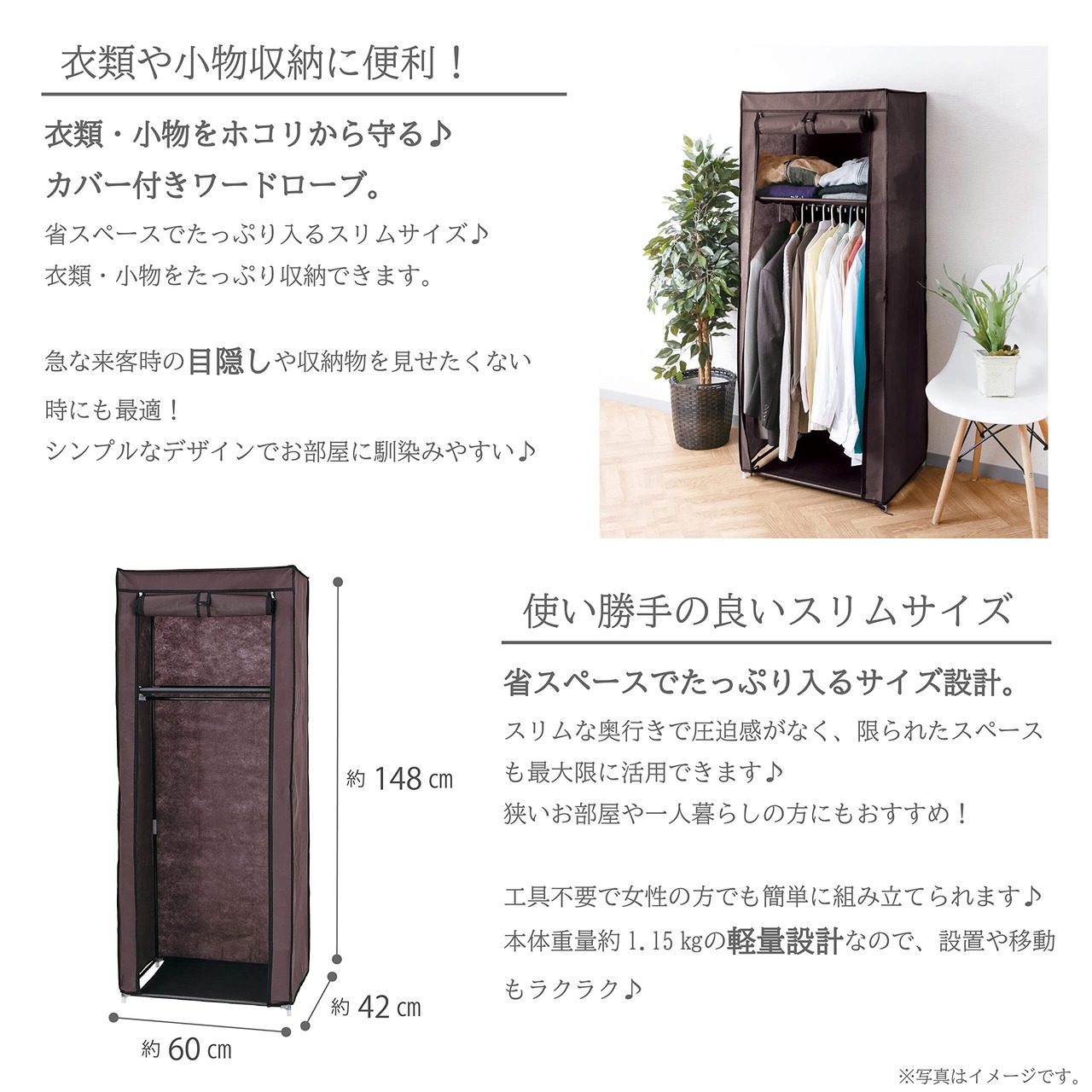 【人気商品】武田コーポレーション 【収納・ラック・組立簡単】 ブラウン 60×42×148cm ワードローブ YAH81460