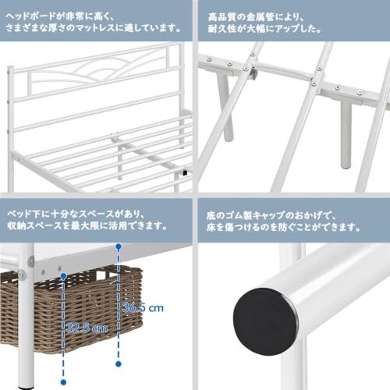Yaheetech ベッドフレーム ダブル 140x200cm ダブルベッド スチールベッド パイプベッド アイアンベッド 10本脚サポート ベッド下収納 ヘッドボード付き フットボード付き カビない きしみにくい 通気性よい 静音設計 丈夫安定 簡単組立 工具付き 高さ36.5-88.5cm 耐荷重272kg ホワイト