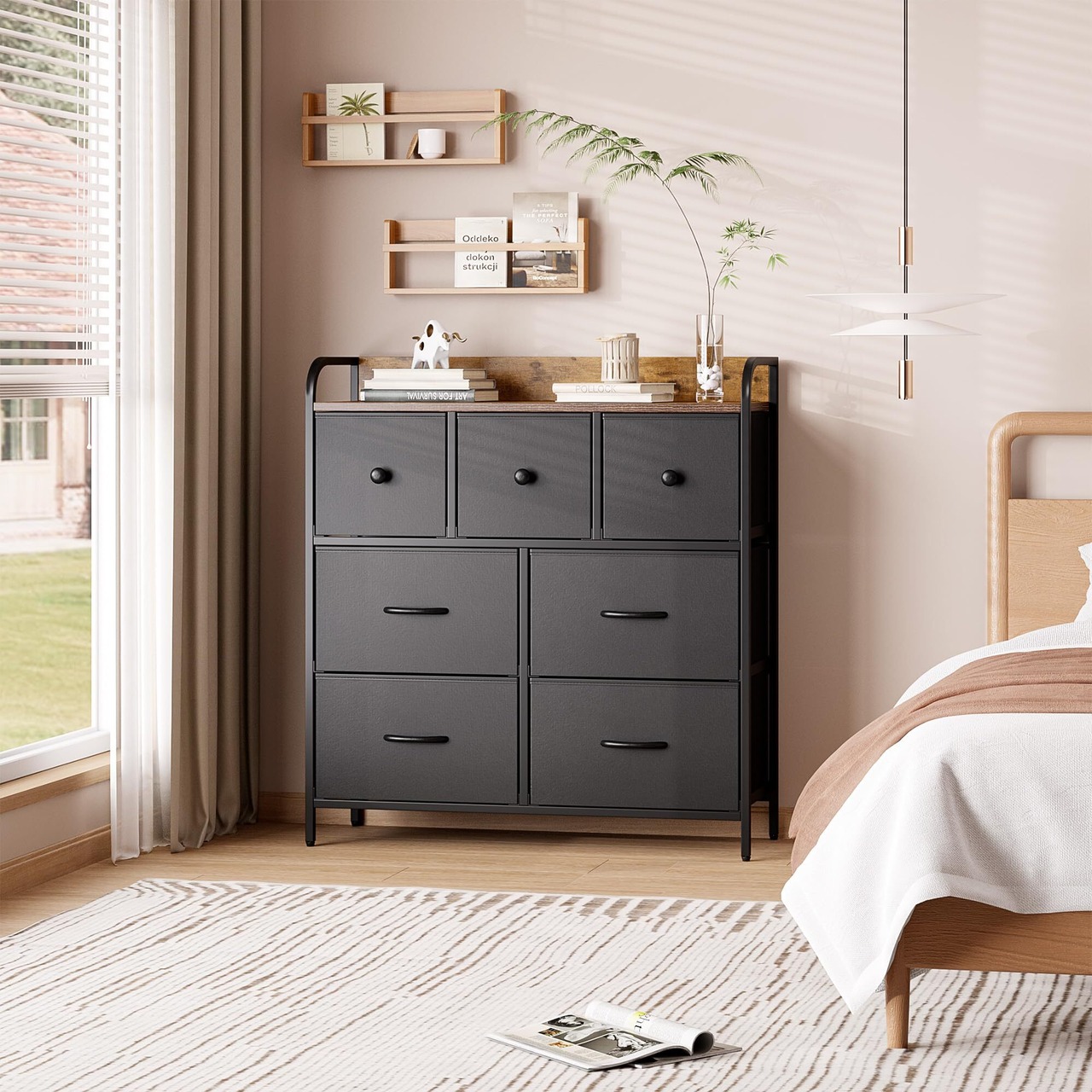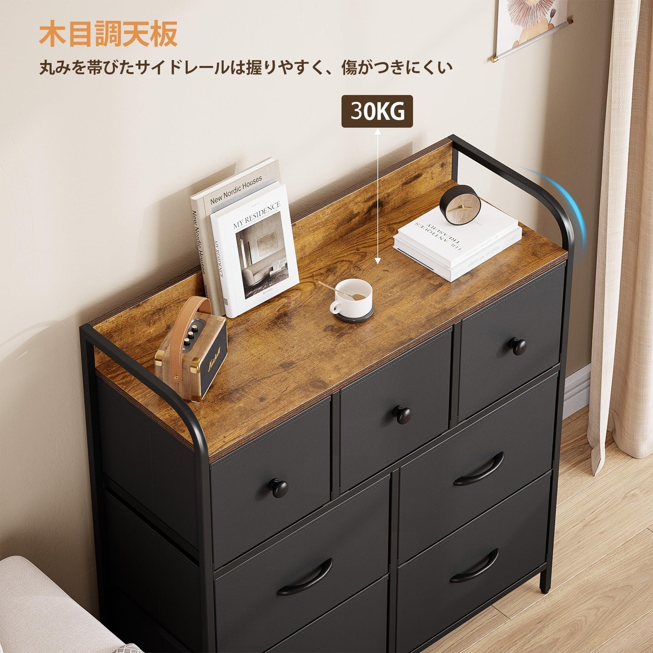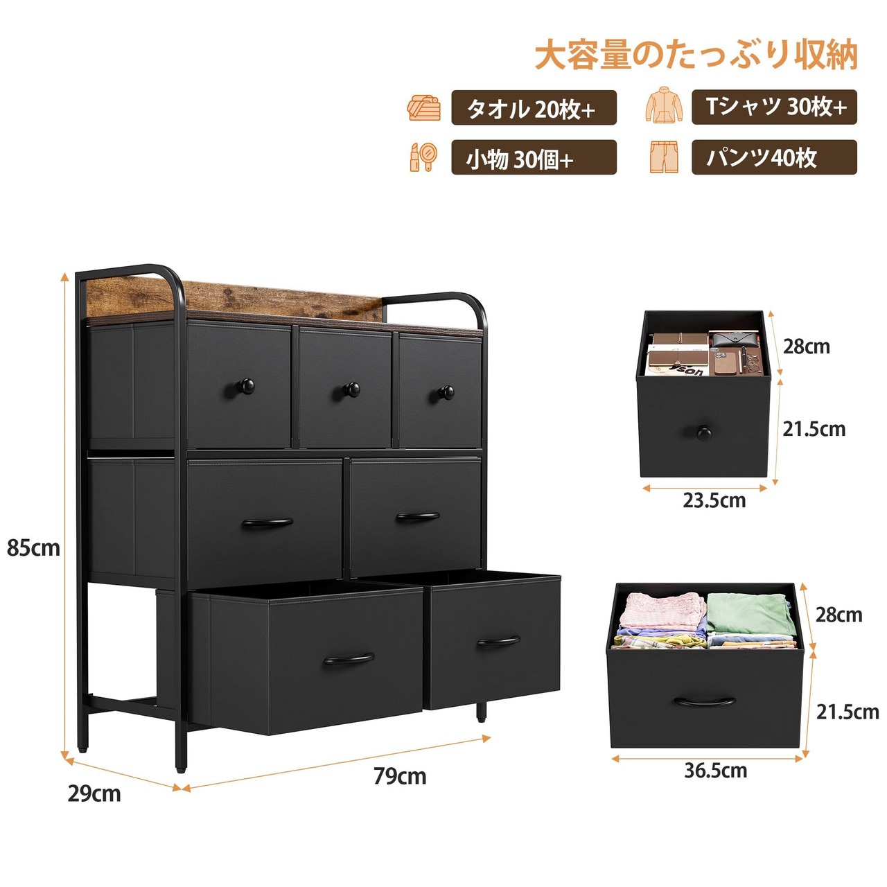Nicehill チェスト タンス 収納チェスト 衣裝ケース リビング 収納 転倒防止 衣類収納 組立簡単 木製天板 布製 引き出し付き 大容量収納 3段7杯【幅79×奥行29×高さ85cm】(ブラック)
