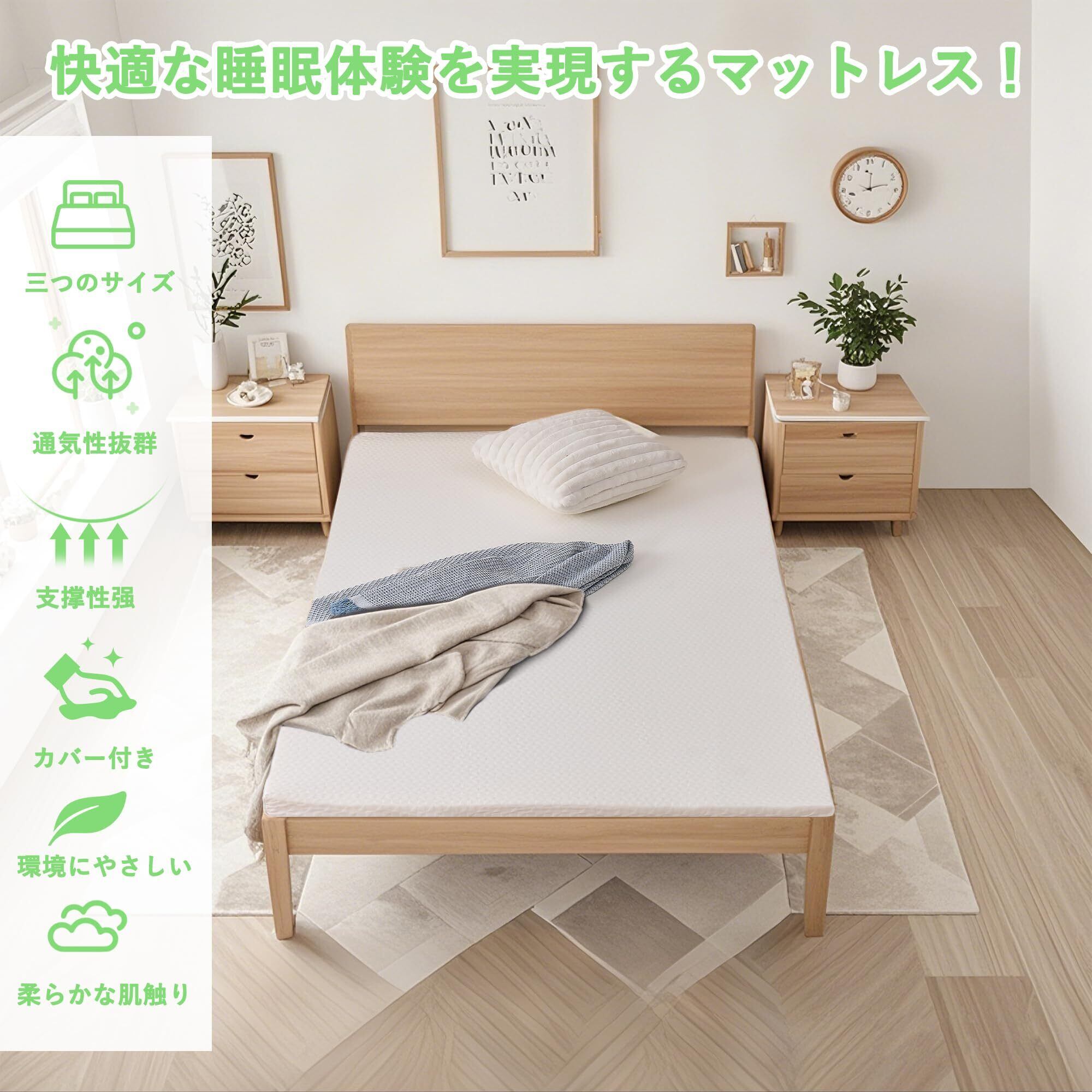 【快適な寝心地】高品質な素材で作られたこのマットレスは、体にしっかりとフィットし、理想的な寝姿勢をサポートします。このマットレスは心地よい弾力と通気性により、快適な睡眠環境を提供します。