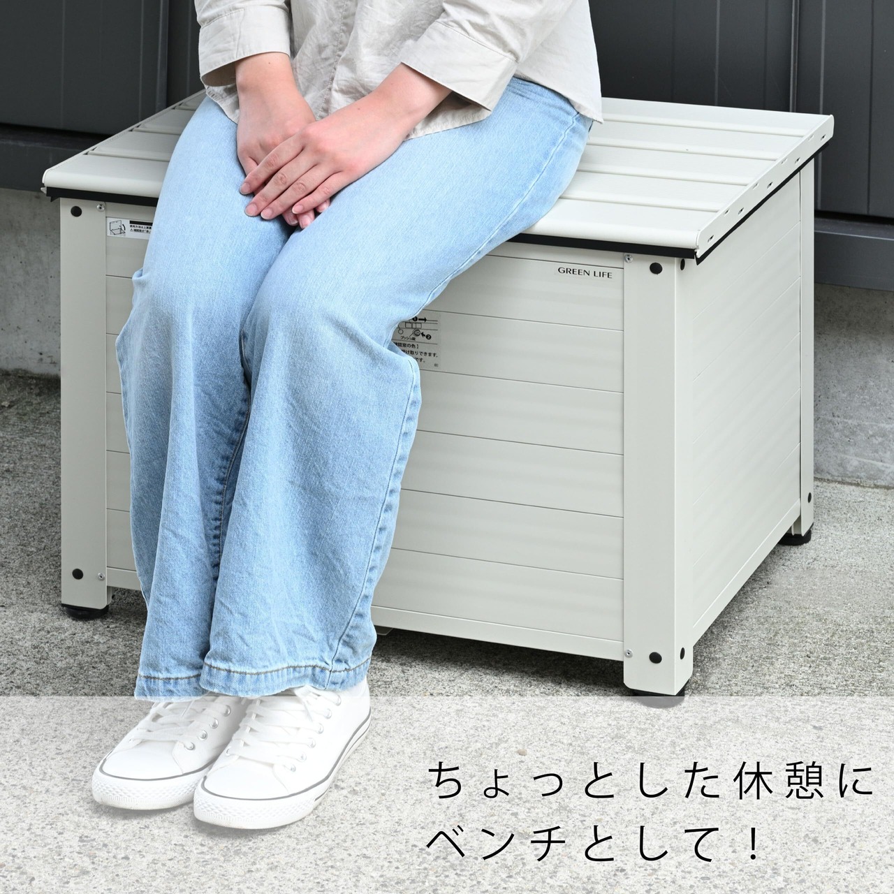 【特価商品】グリーンライフ 宅配ボックス ベンチ型 ベンチ ストッカー 収納 収納ボックス 収納ベンチ 玄関 縁台 物置 倉庫 さびにくいアルミ製 大容量 置き配 戸建て用 個人宅 屋外 不在受取 防犯対策 盗難防止 鍵付き Receibo(レシーボ) マットアイボリー TRA-64(MIV)